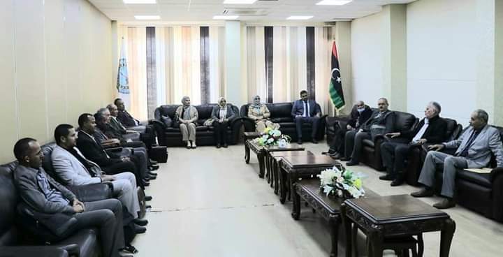 بحضور السيد وكيل الشؤون العلمية بجامعة عمر المختار وعمداء كليات التقنية الطبية بالجامعات الليبية وقبل الإجتماع قام السيد رئيس جامعة عمر المختار باستقبال السادة المشاركين في هذا الاجتماع والمشاركين في اجتماع لجنة الطب البيطري والتي تزامن عقد اجتماعها مع اجتماع لجنة كليات التقنيةالطبية. .