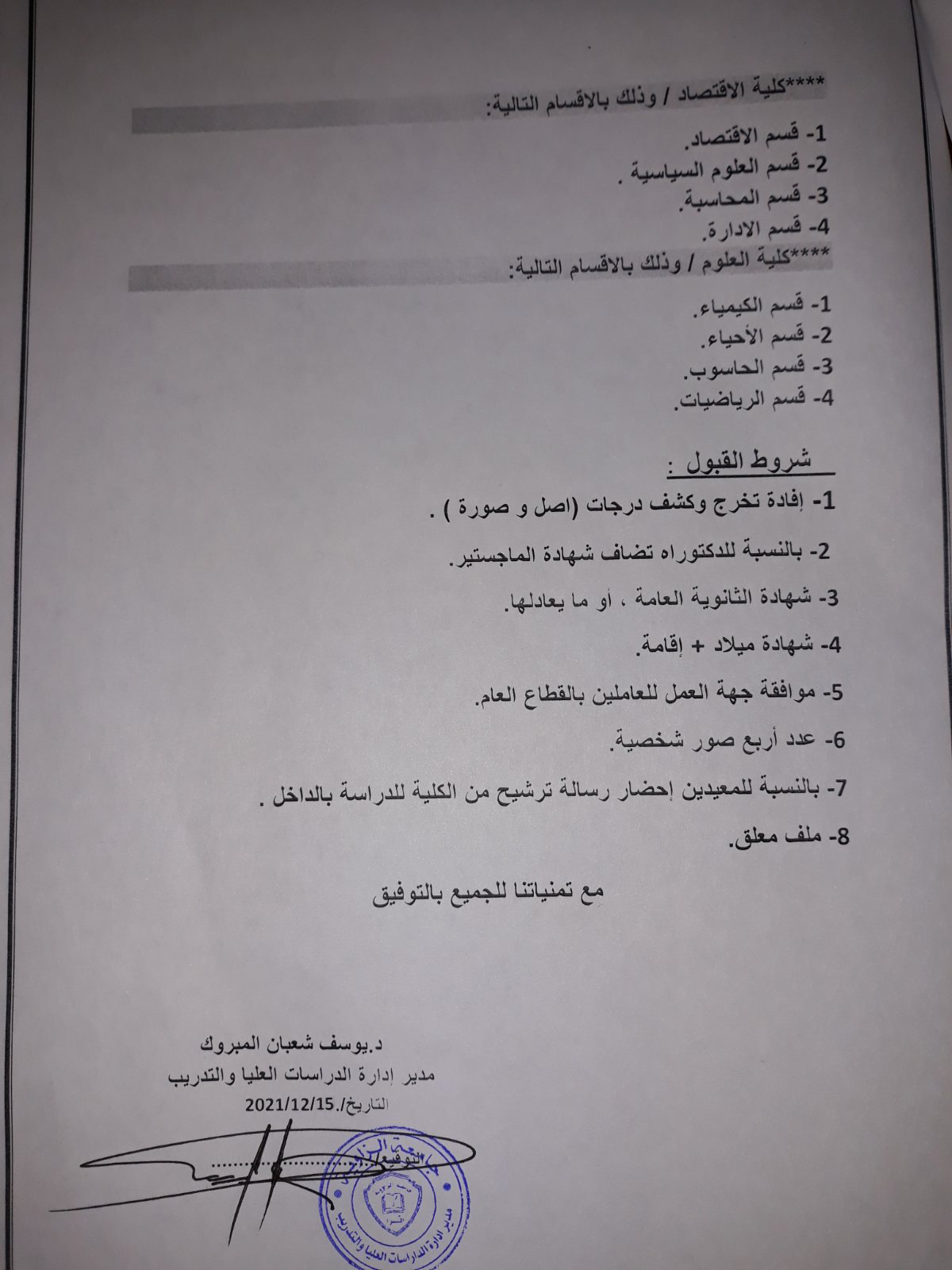فتح باب القبول لبرامج الدراسات العليا بالجامعة