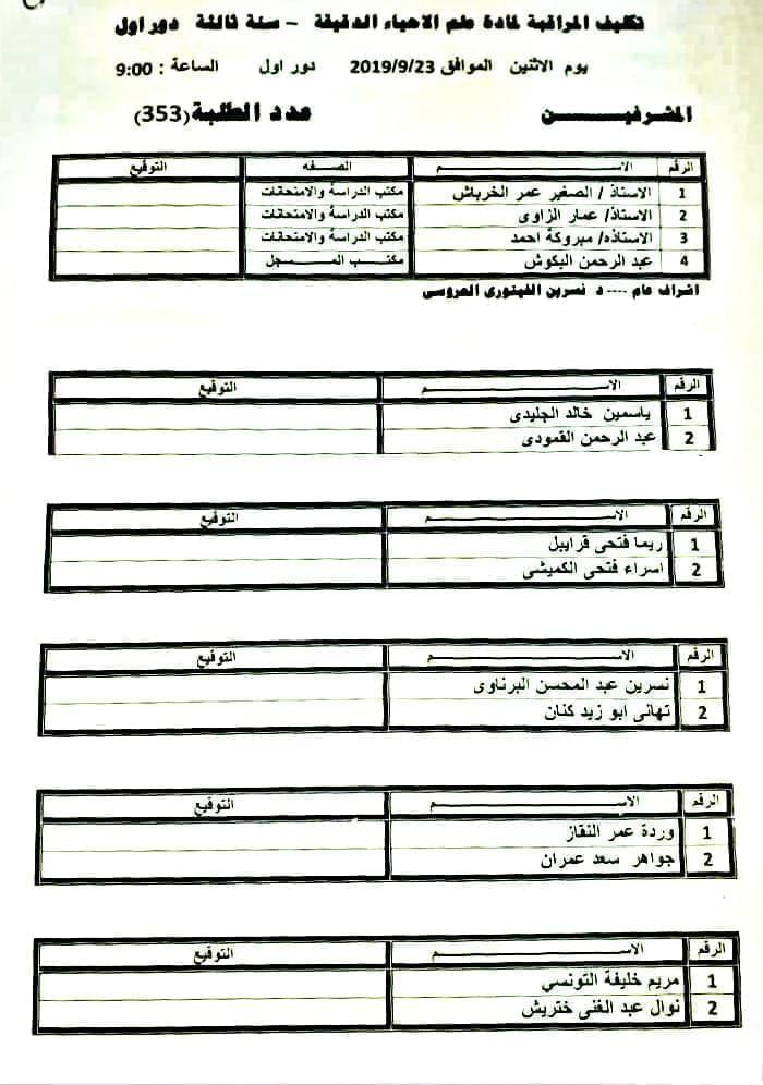 أسماء المكلفين بمراقبة امتحان الأحياء الدقيقة