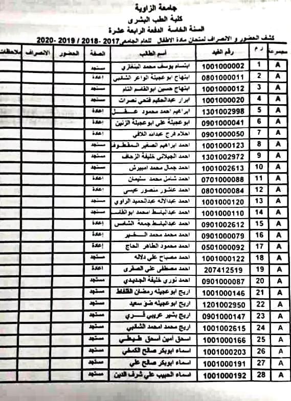 تقسيم المجموعات للامتحان السريري لمادة الأطفال للسنة الخامسة الدفعة 14 بمستشفى الزاوية التعليمي.