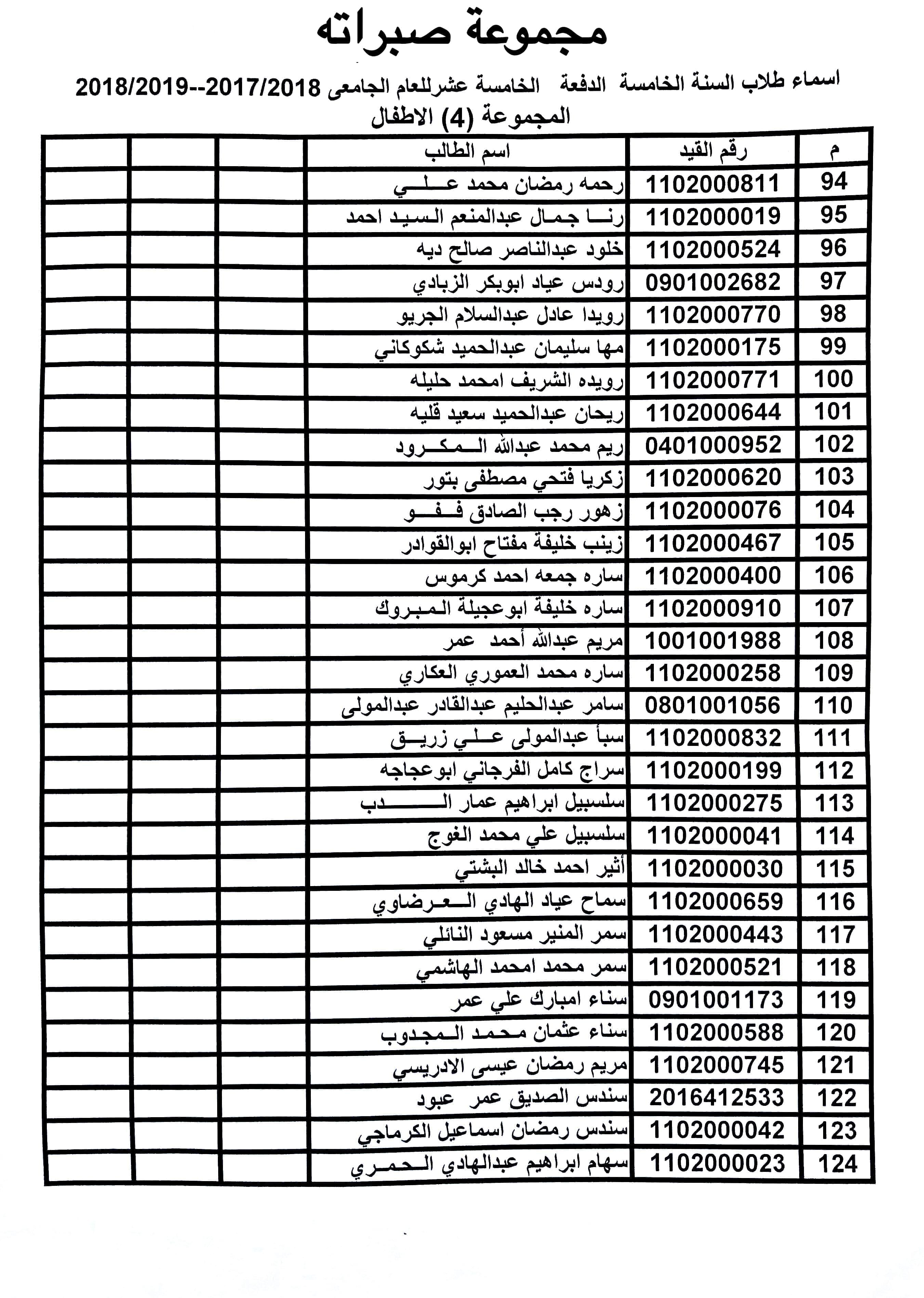 تقسيم مجموعات الأطفال للسنة الخامسة الدفعة 15 وذلك ابتداء من يوم الأحد الموافق 08-03-2020.