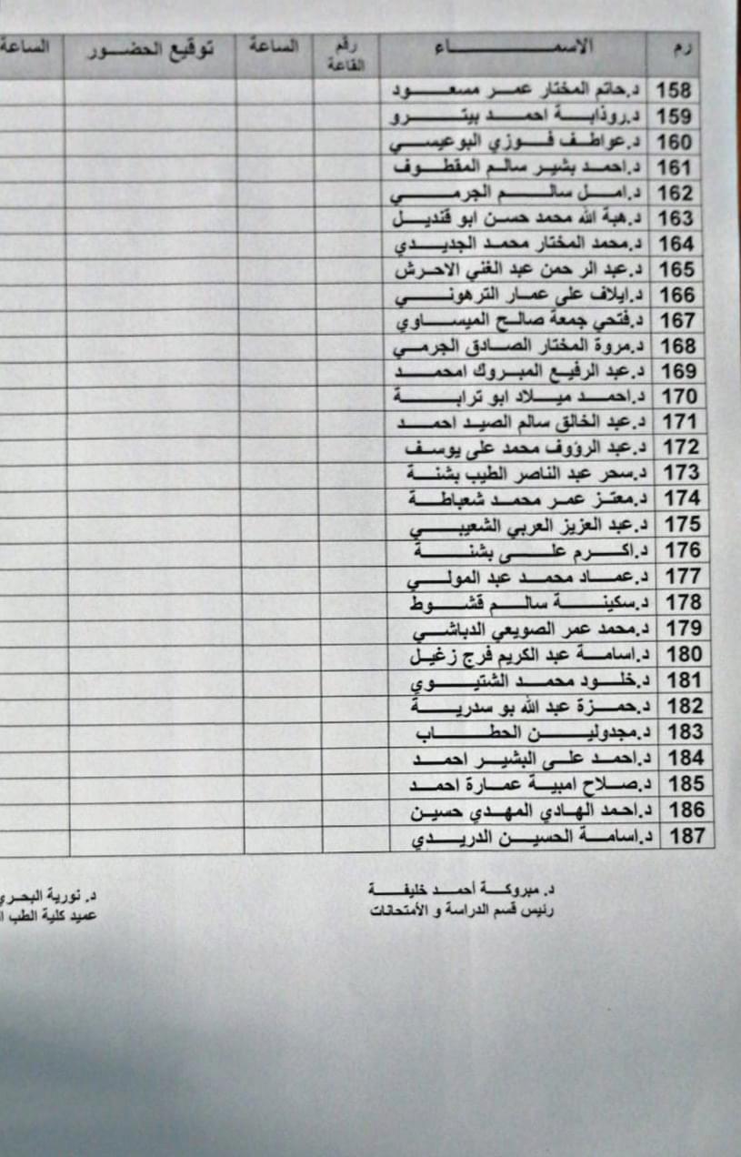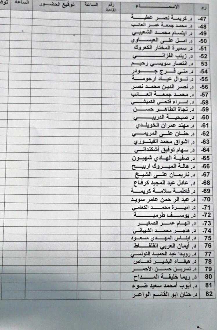 أسماء المكلفين بمراقبة امتحان الدور الأول في مادة طب العيون للسنة الرابعة الدفعة 18,17وذلك يوم الأحد الموافق 11-10-2020 الساعة 8:00 صباحا.