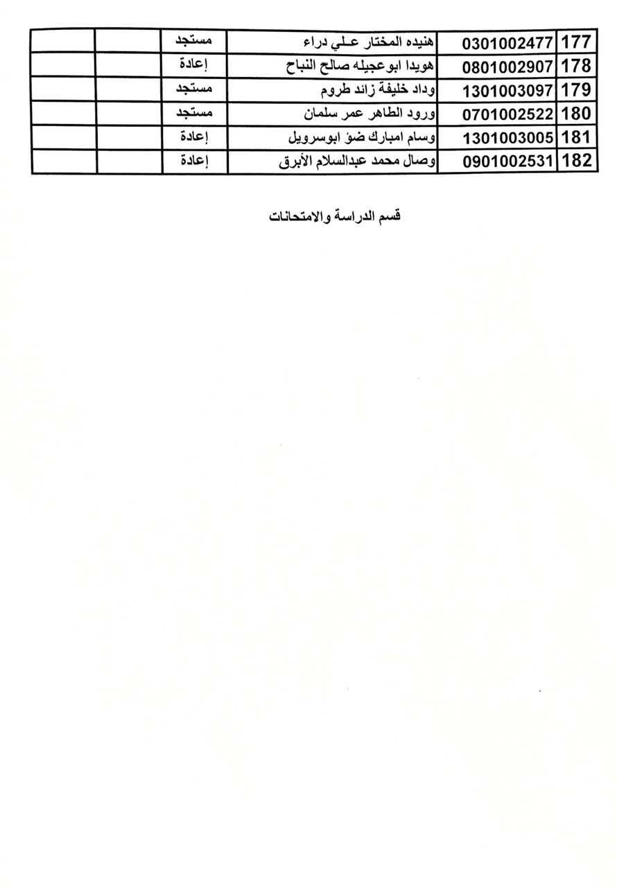 تنويه: يطلب من جميع الطلبة الالتزام بدخول الامتحان باليوم المحدد له في القوائم ويمنع من دخول الامتحان في حال التغيب عن اليوم المحدد له.