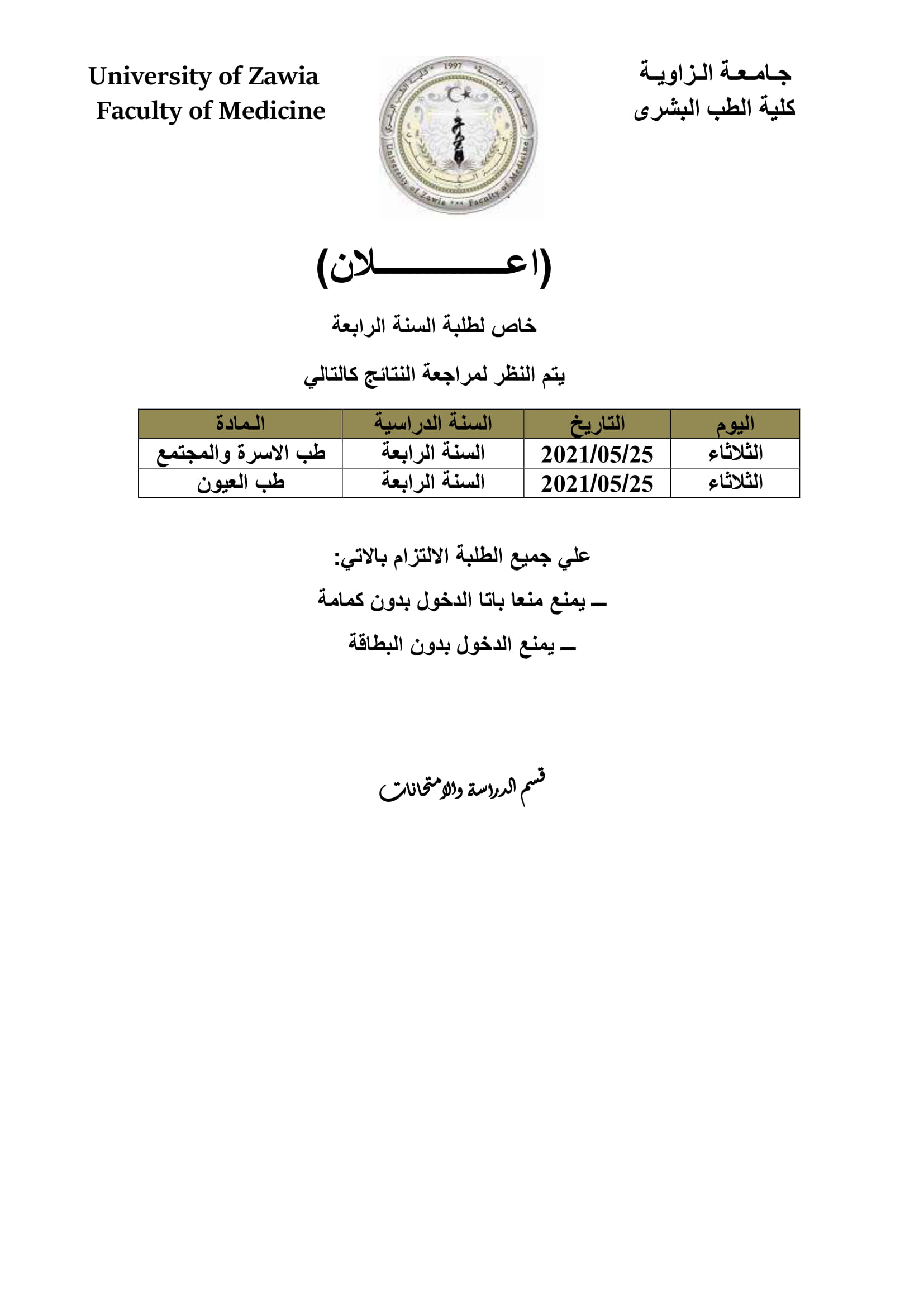قسم الدراسة والامتحانات