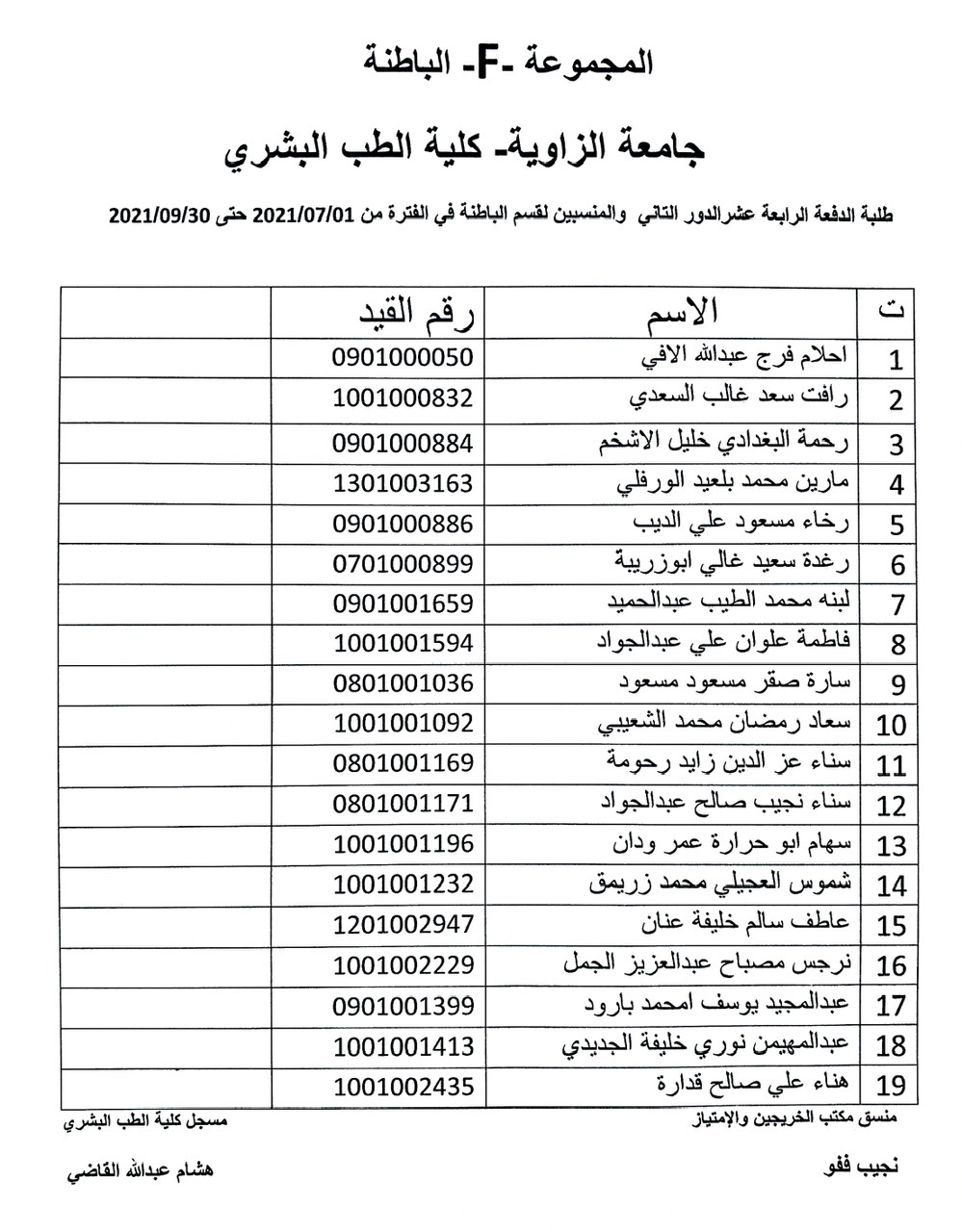 يعلن مكتب الامتياز أن بداية فترة الامتياز لطلبة الدفعة 14 الدور الثاني هو 1-7-2021 حسب القوائم المعلنة.