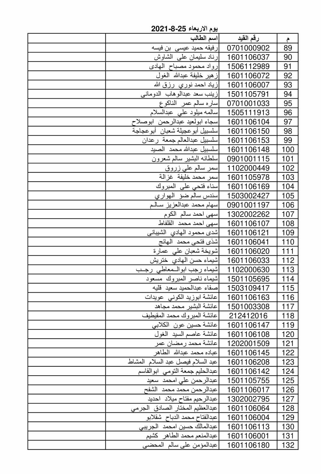 وذلك حسب القوائم المرفقة