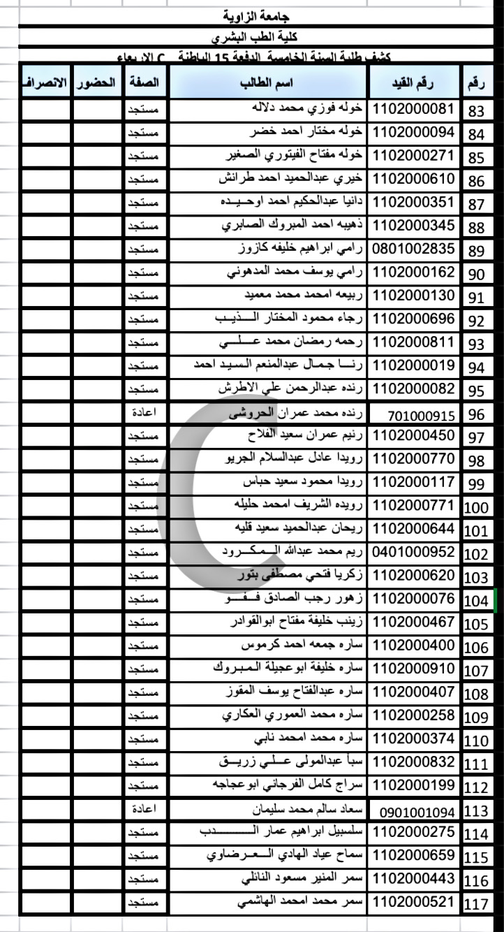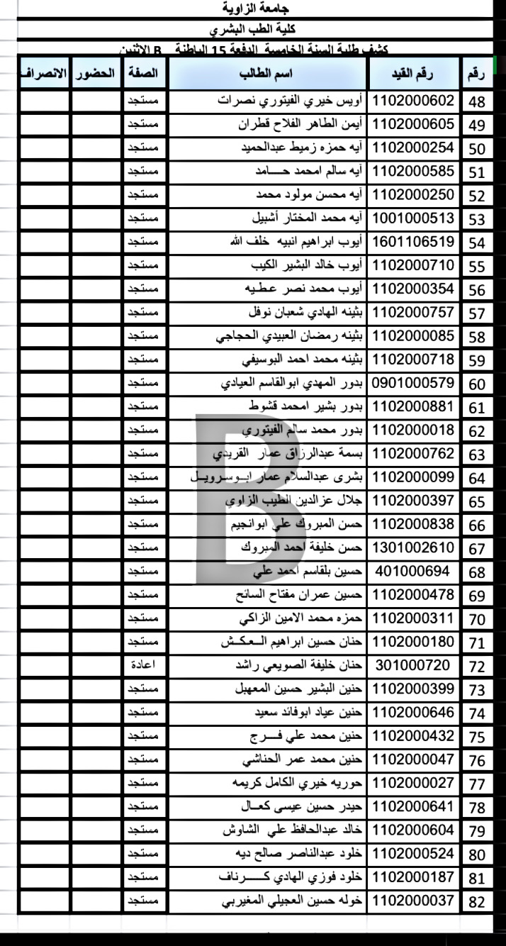 تقسيم مجموعات الامتحان السريري الدور الأول لمادة الباطنة للسنة الخامسة الدفعة 15 والتكميلي: