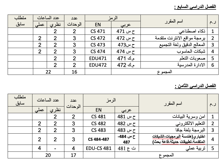 - تطوير وتحديث المناهج والمقررات العلمية والتطبيقية في مجال الحاسب الإلى والعلوم ذات العلاقة.