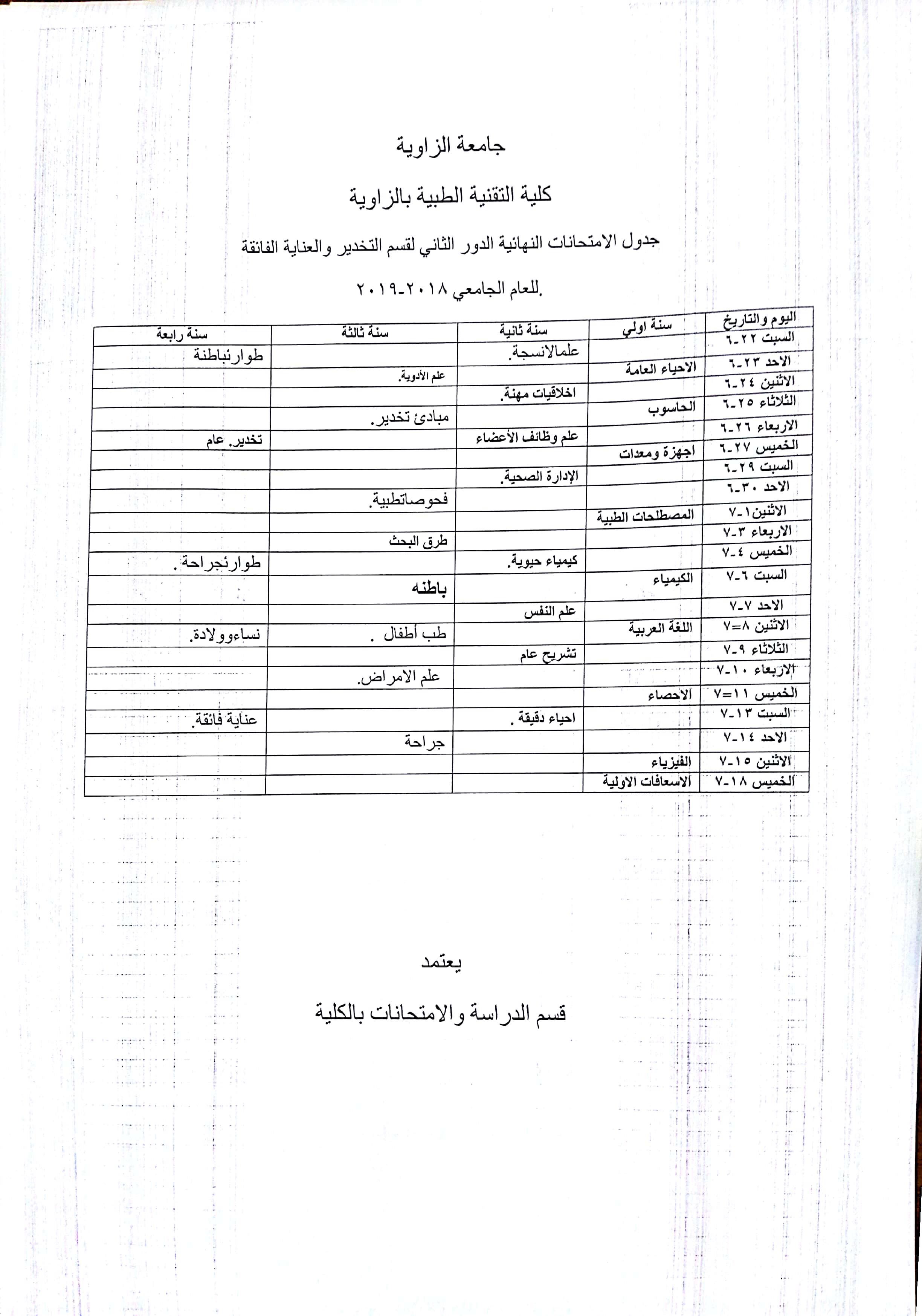 الجدول الدراسي للسنة الثانية للعام الجامعي 2021/2020م الجدول الدراسي للسنة الثانية للعام الجامعي 2021/2020م
