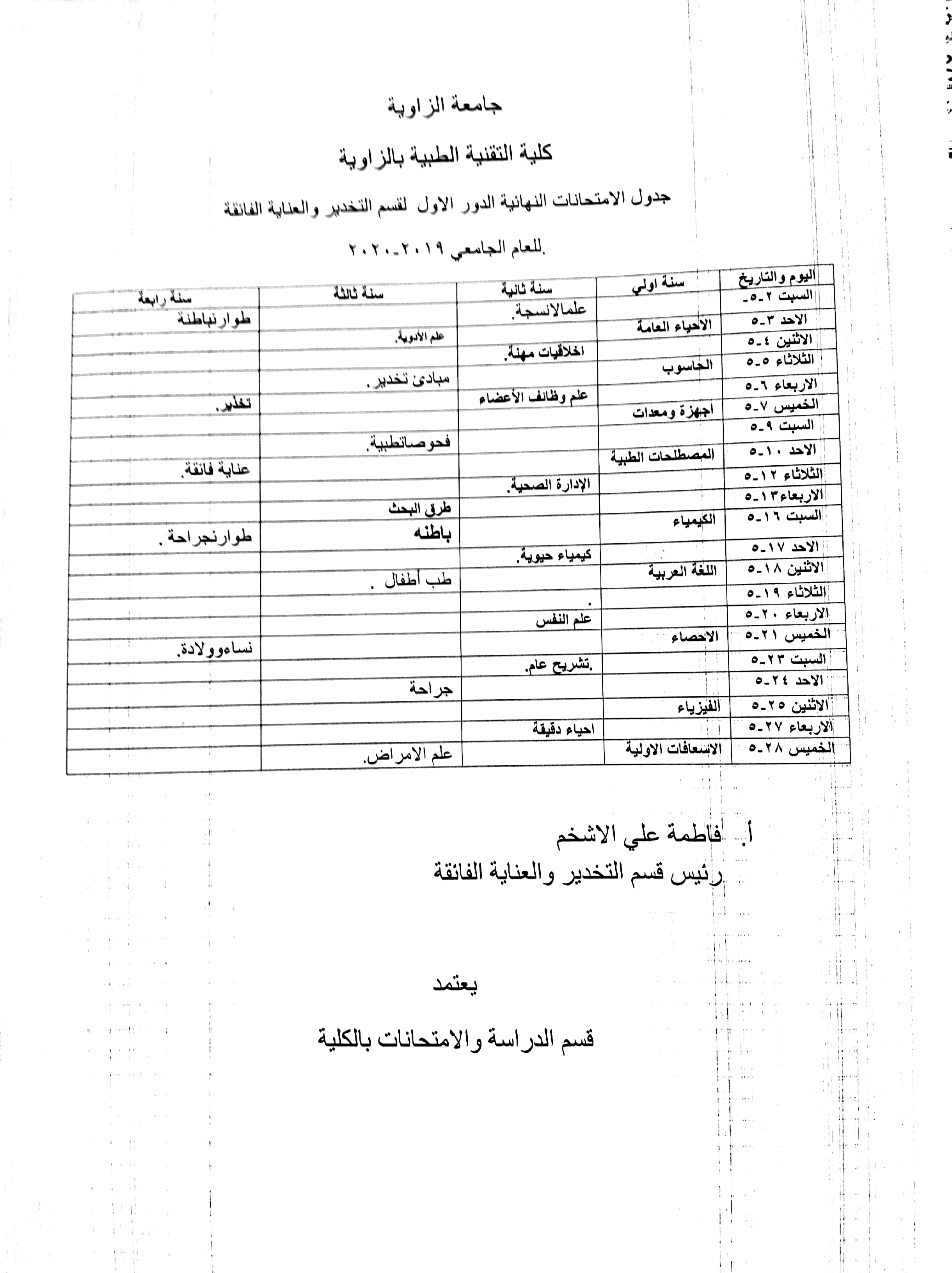 الجدول الدراسي للسنة الثالثة للعام الجامعي 2021/2020م الجدول الدراسي للسنة الثالثة للعام الجامعي 2021/2020م