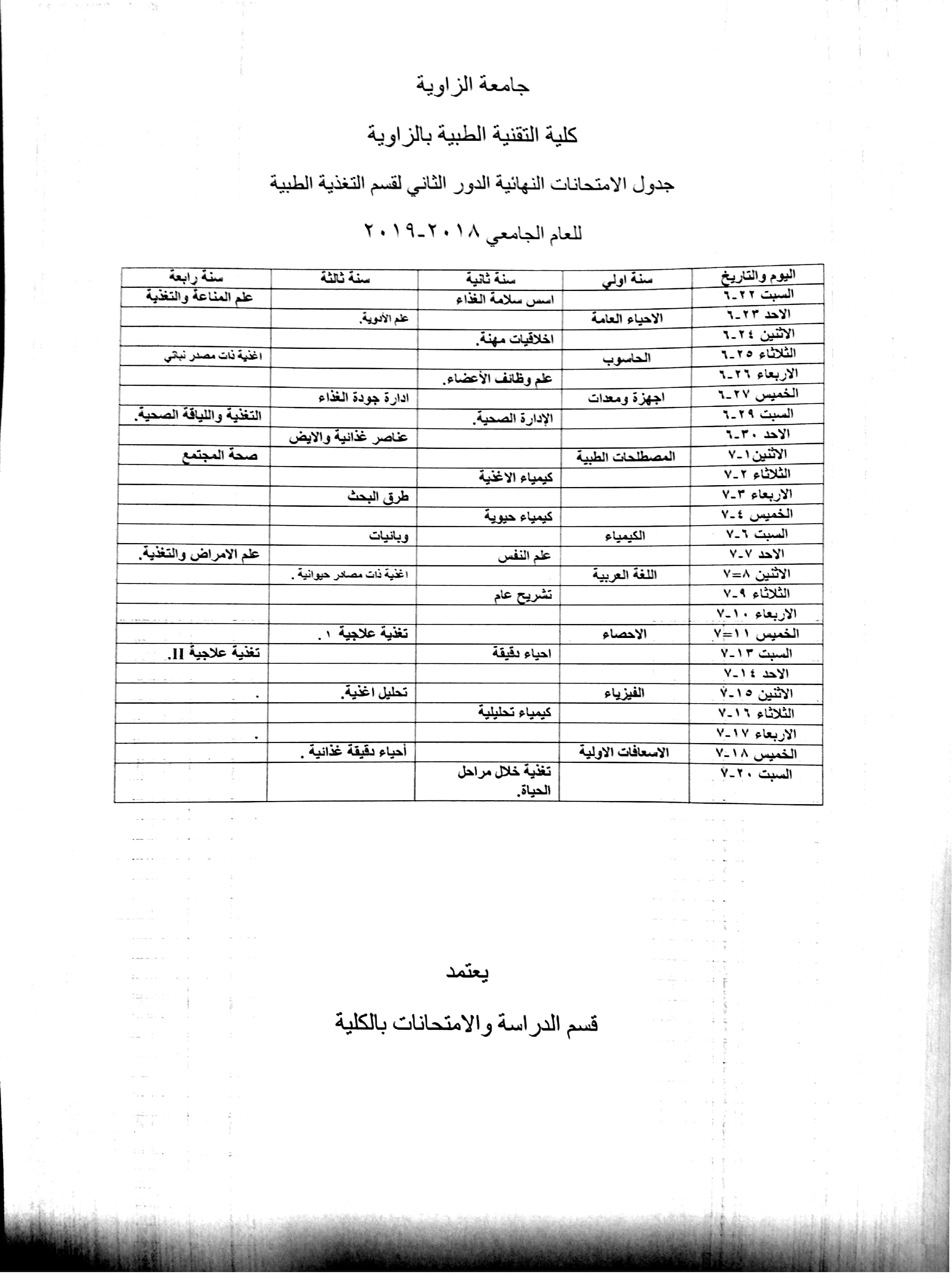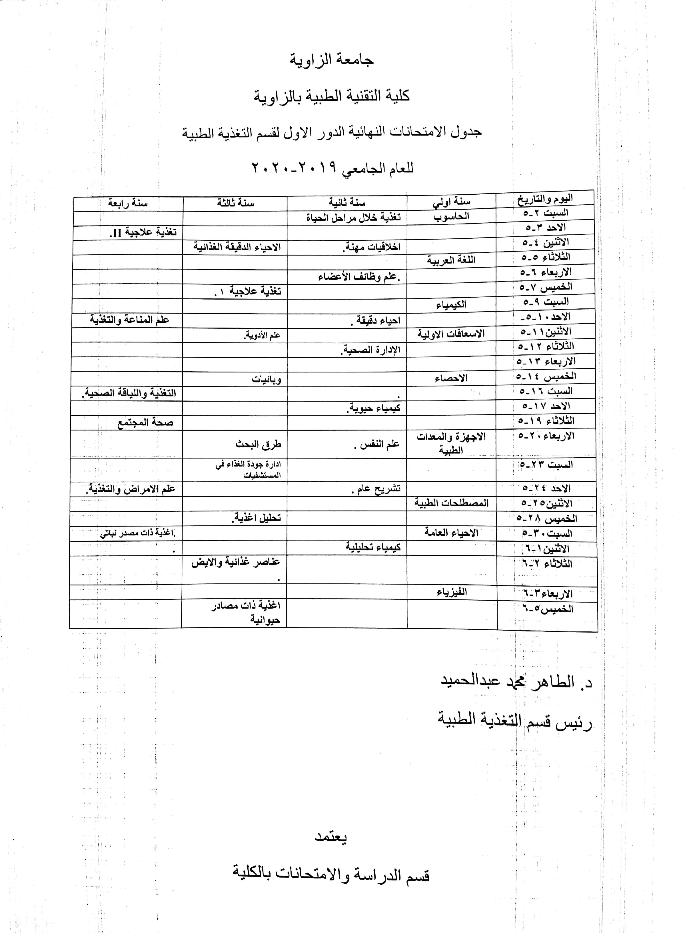 الجدول الدراسي للسنة الرابعة للعام الجامعي 2021/2020م الجدول الدراسي للسنة الرابعة للعام الجامعي 2021/2020م