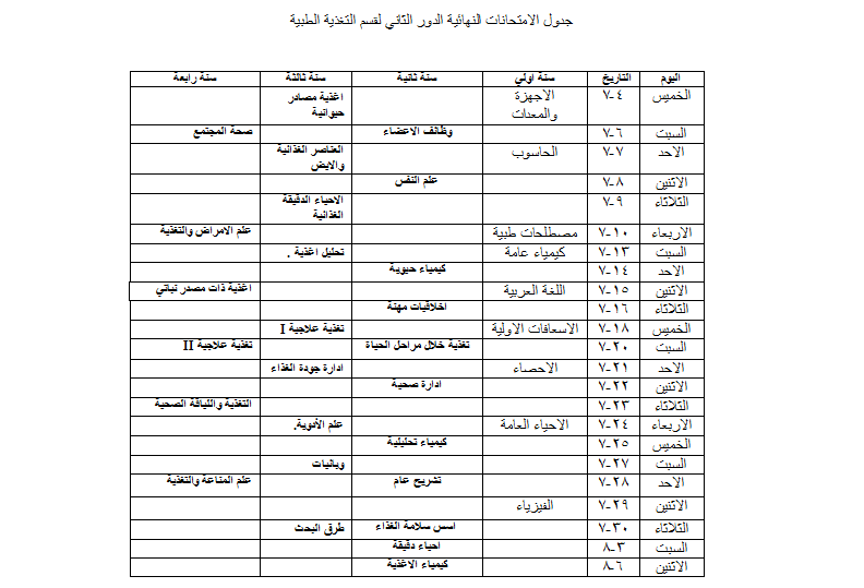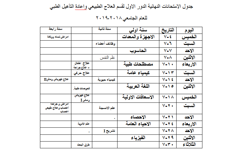 نرفق لكم أدنى هذا الإعلان صور الجداول المعدلة والنهائية للإمتحانات النهائية للدور الثاني للعام الجامعي 2019/2018 .