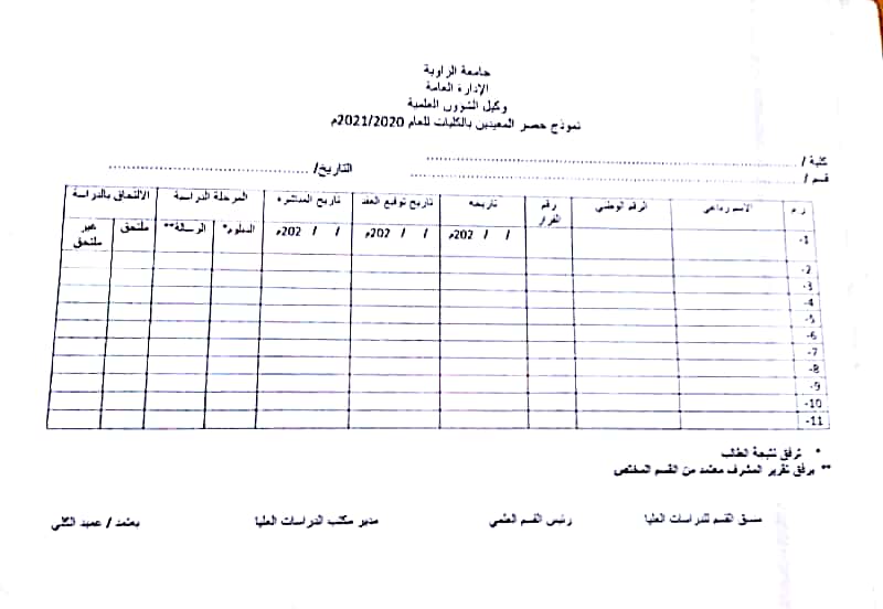 نلفت عنايتكم إلى ضرورة إحضار جميع البيانات المُدرجة بالنموذج بمعرض الصور أدنى هذا الإعلان وذلك يوم غدٍ الأحد بمكتب السيد مدير الشؤون الإدارية والمالية بالكلية .
