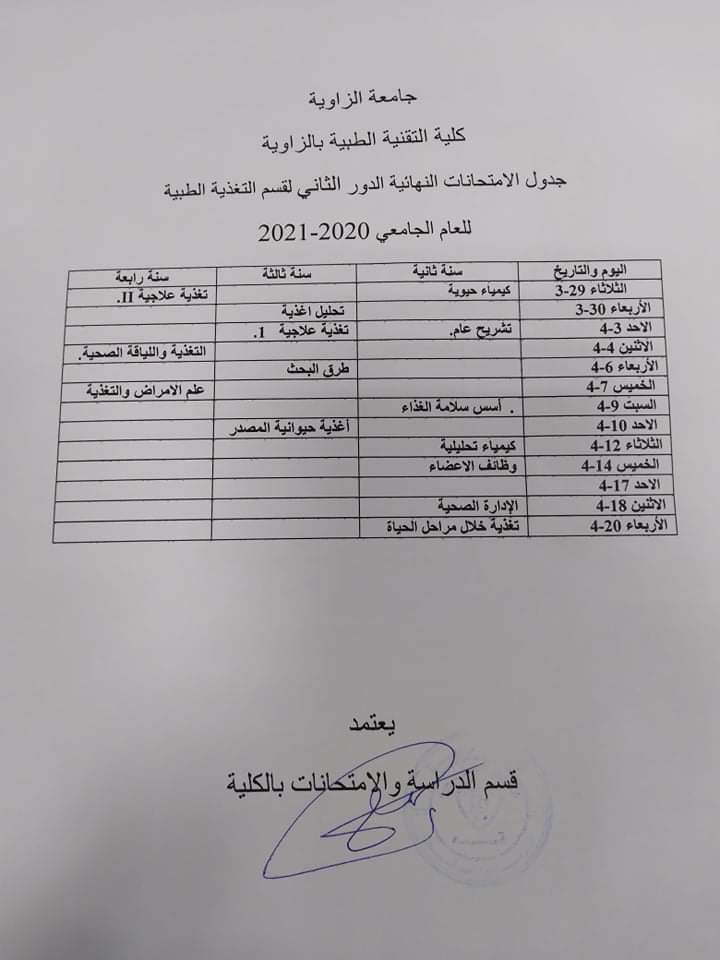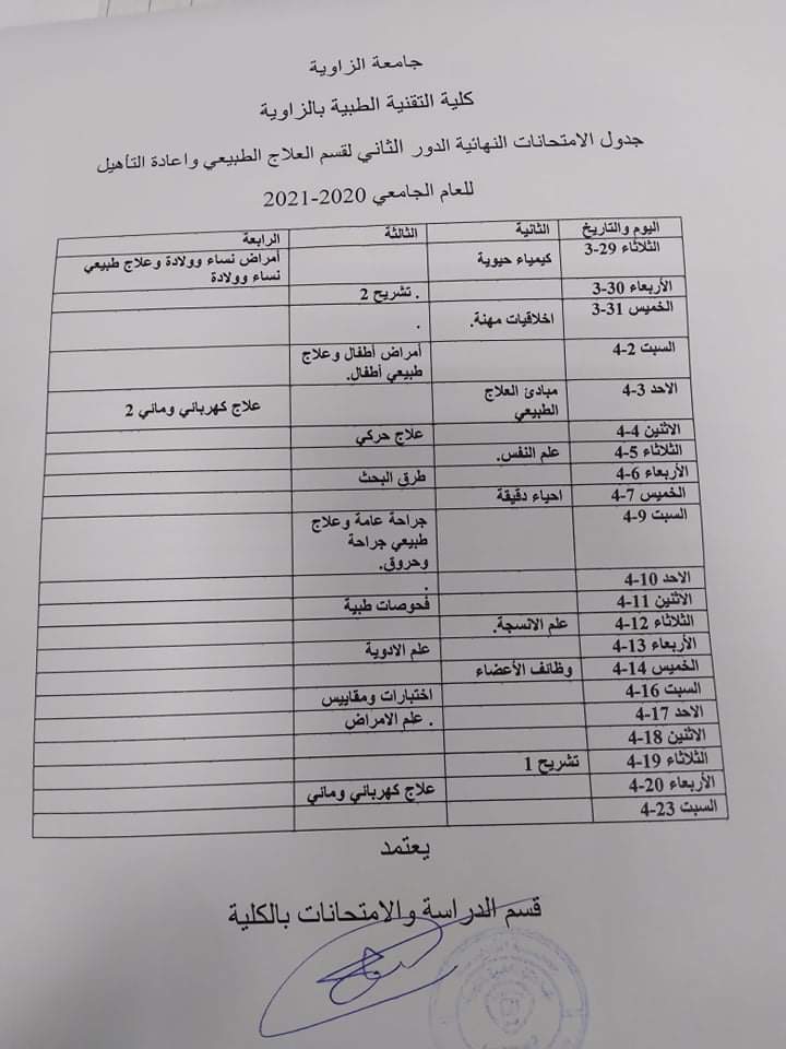 نرفق لكم أدنى هذا الإعلان بمعرض الصور تعديل لبعض الجداول للدور الثاني .