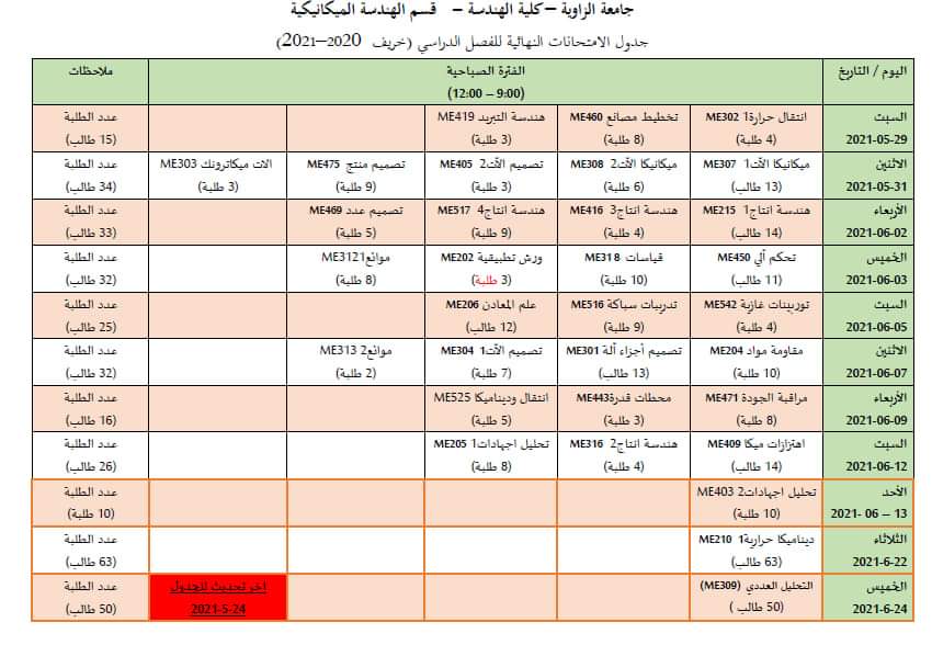 عدد خريجي قسم قسم الهندسة الميكانيكيـة والصناعية : 221