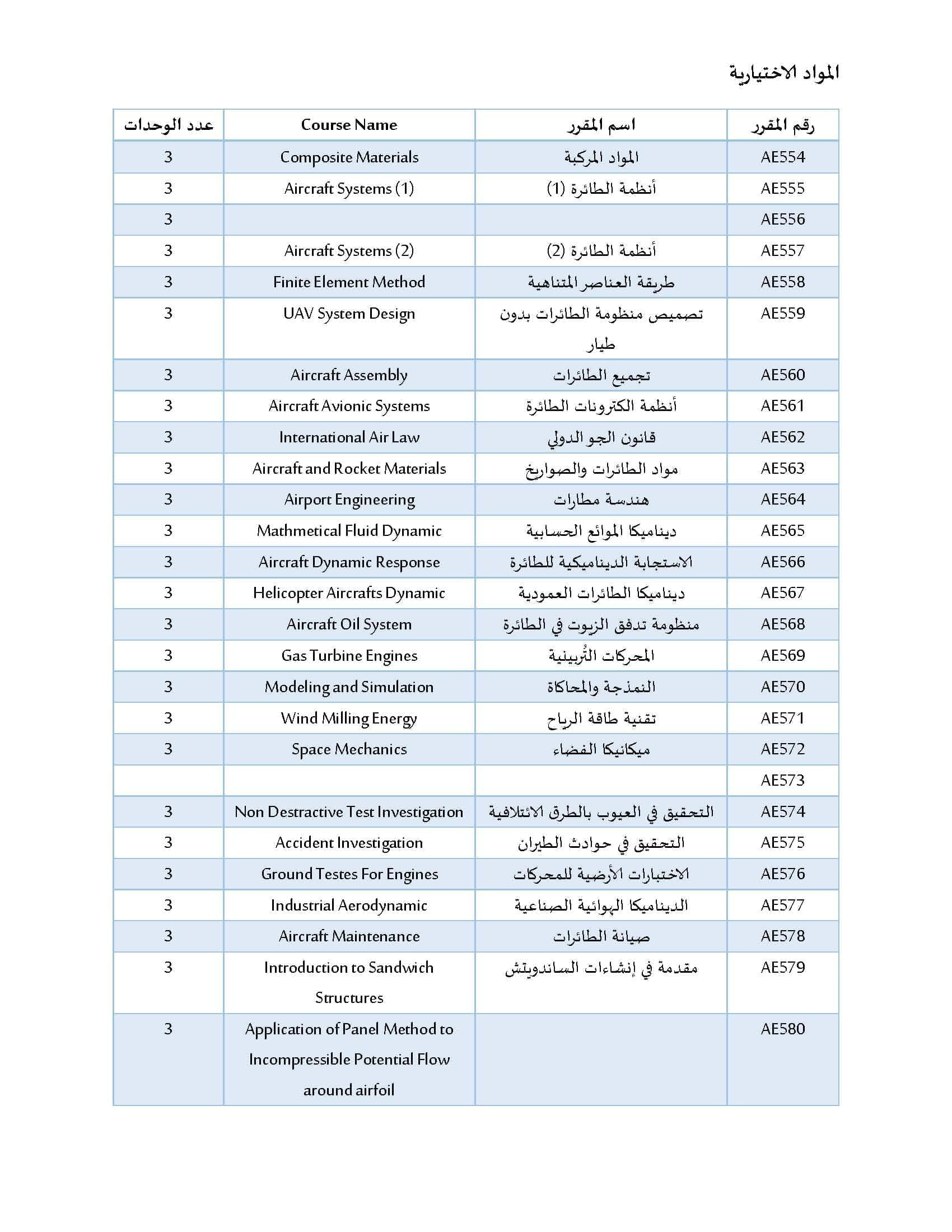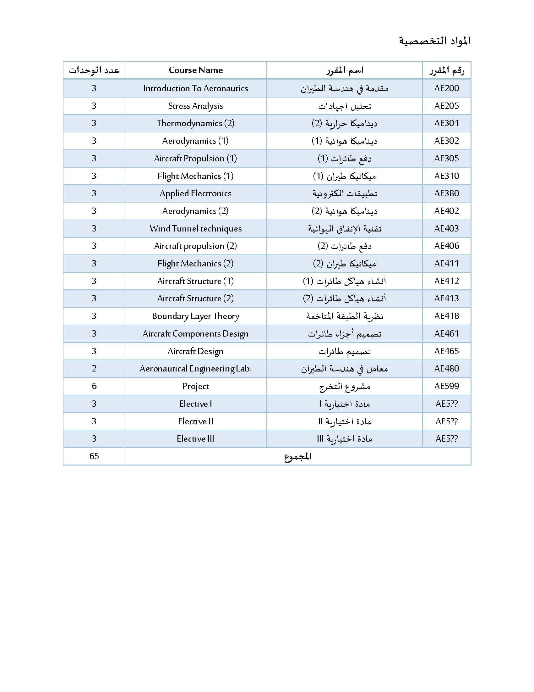 3. إعداد مهندسين لهم القدرة على استخدام المهارات الهندسية وتصميم وتحليل النظم المختلفة في مجال هندسة الطيران من خلال العمل الجماعي.