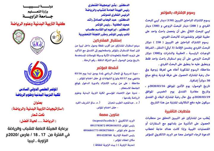 كلية التربية البدنية وعلوم الرياضة / جامعة الزاوية