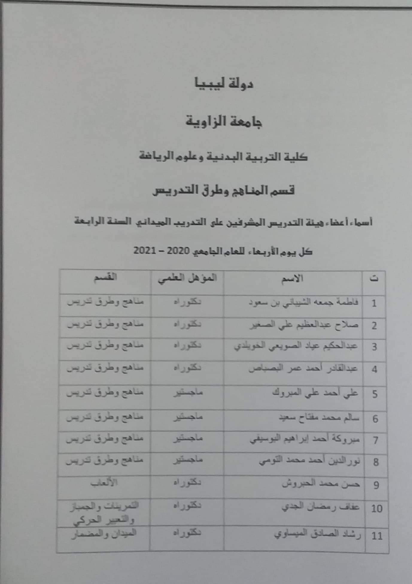 إعلان للمشرفين على التدريب الميداني بكلية التربية البدنية وعلوم الرياضة