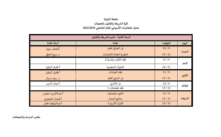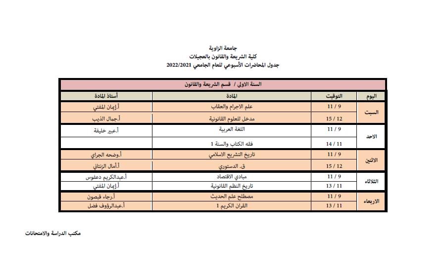 الجدول الدراسي