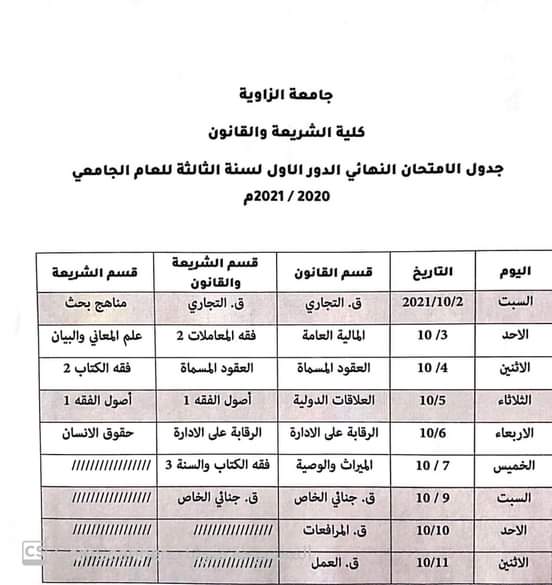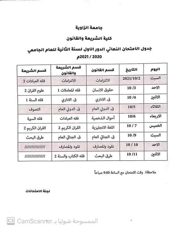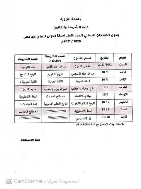 اعلان عن انطلاق امتحانات الدور الثانيبأذن الله تعالىٰ يوم السبت الموافق 2 / 10 / 2021 لطلبة كلية الشريعة والقانون بجميع الاقسام العلمية بالكلية