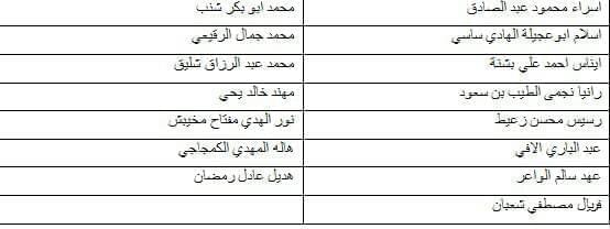نعلمكم بأن الدراسة للمجموعة الأولي ستبدأ بمشيئة الله يوم السبت القادم الموافق7-12 بمبني القاعات لكلية الصيدلة وفق للجدول المرفق...نرجوا ايضا الإطلاع علي الأسماء المرفقه .هذا وسنعلمكم عن بدء الدراسة للمجموعة الثانية عقب الإنتهاء من عملية التنسيب وكذلك الإنتهاء من التسجيل. د.هناء اصميدة منسق سنة الاعداد.