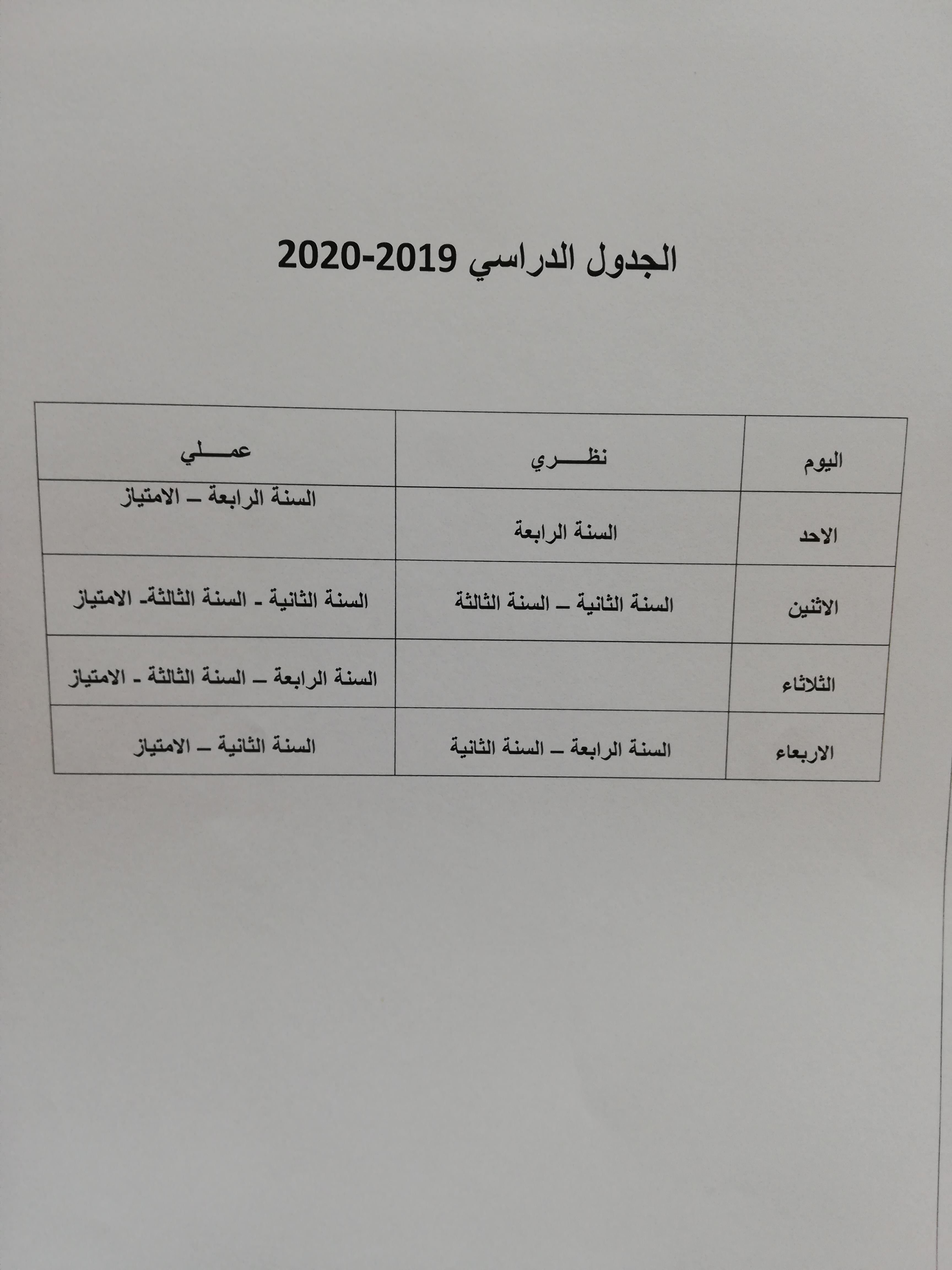 الجدول الدراسي 2019_2020 الجدول الدراسي 2019_2020