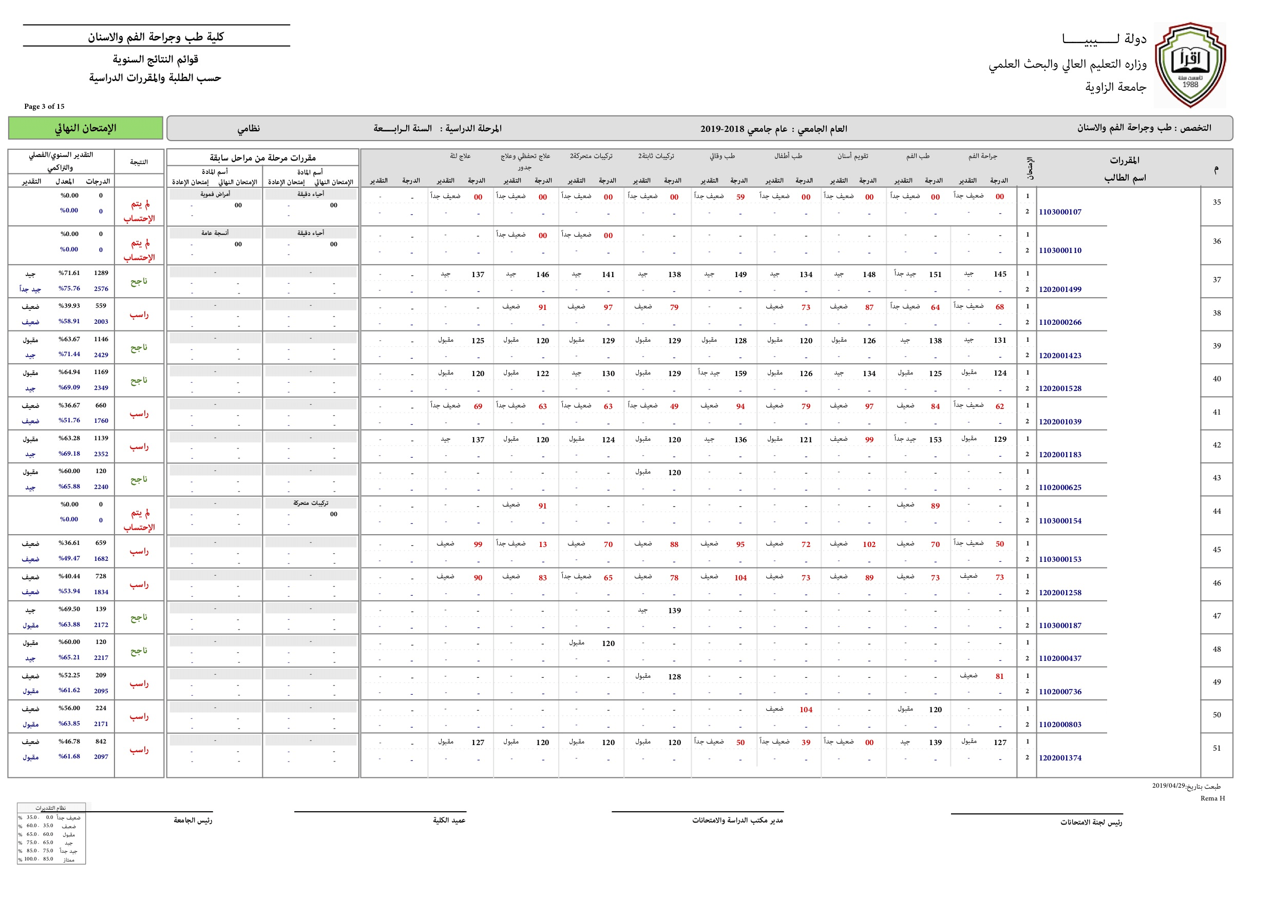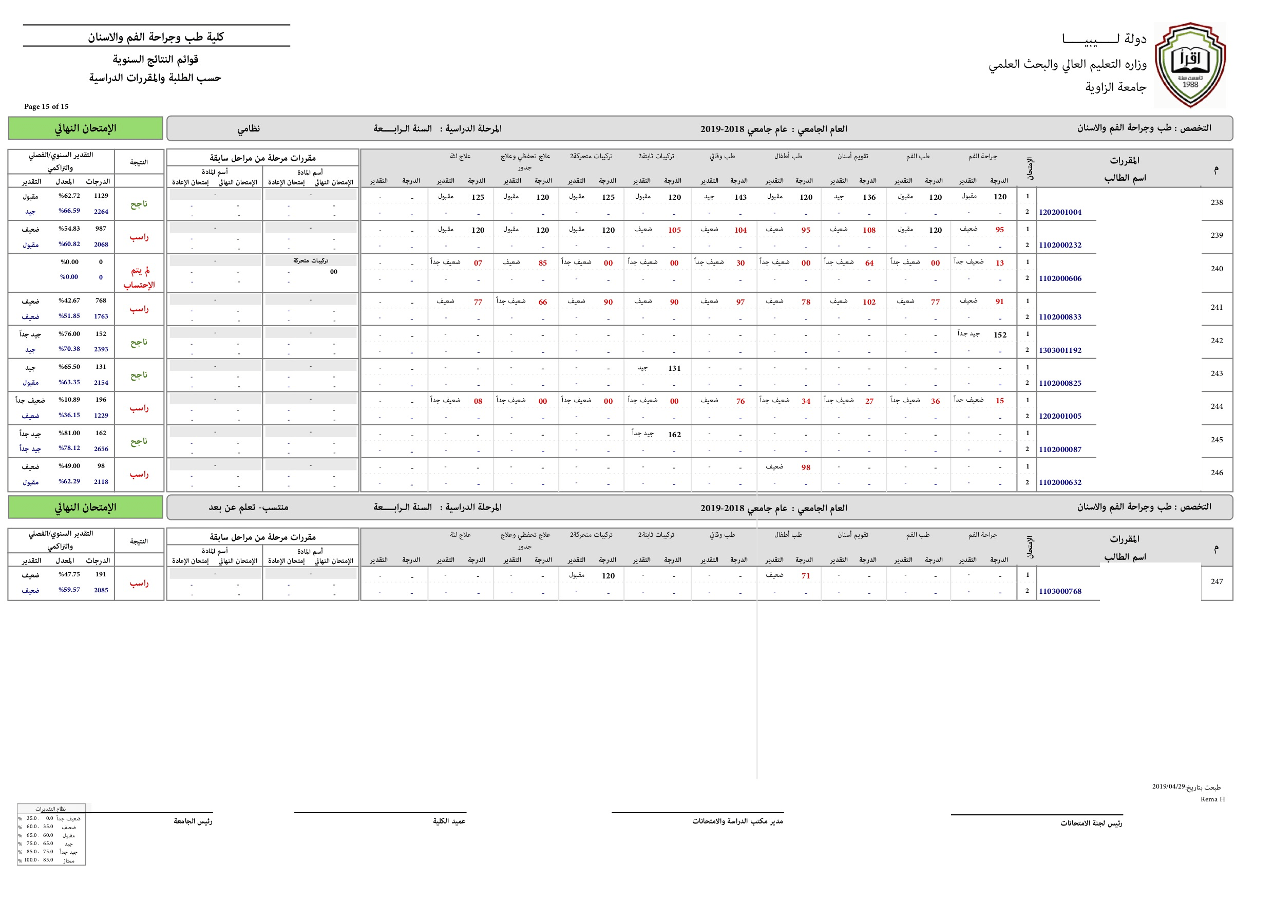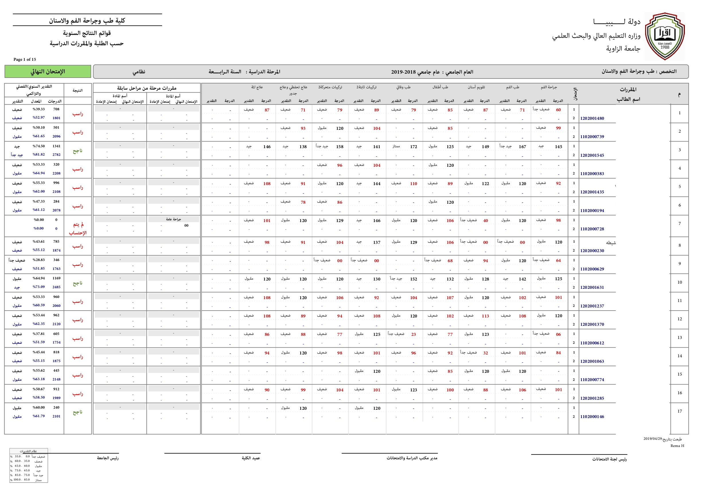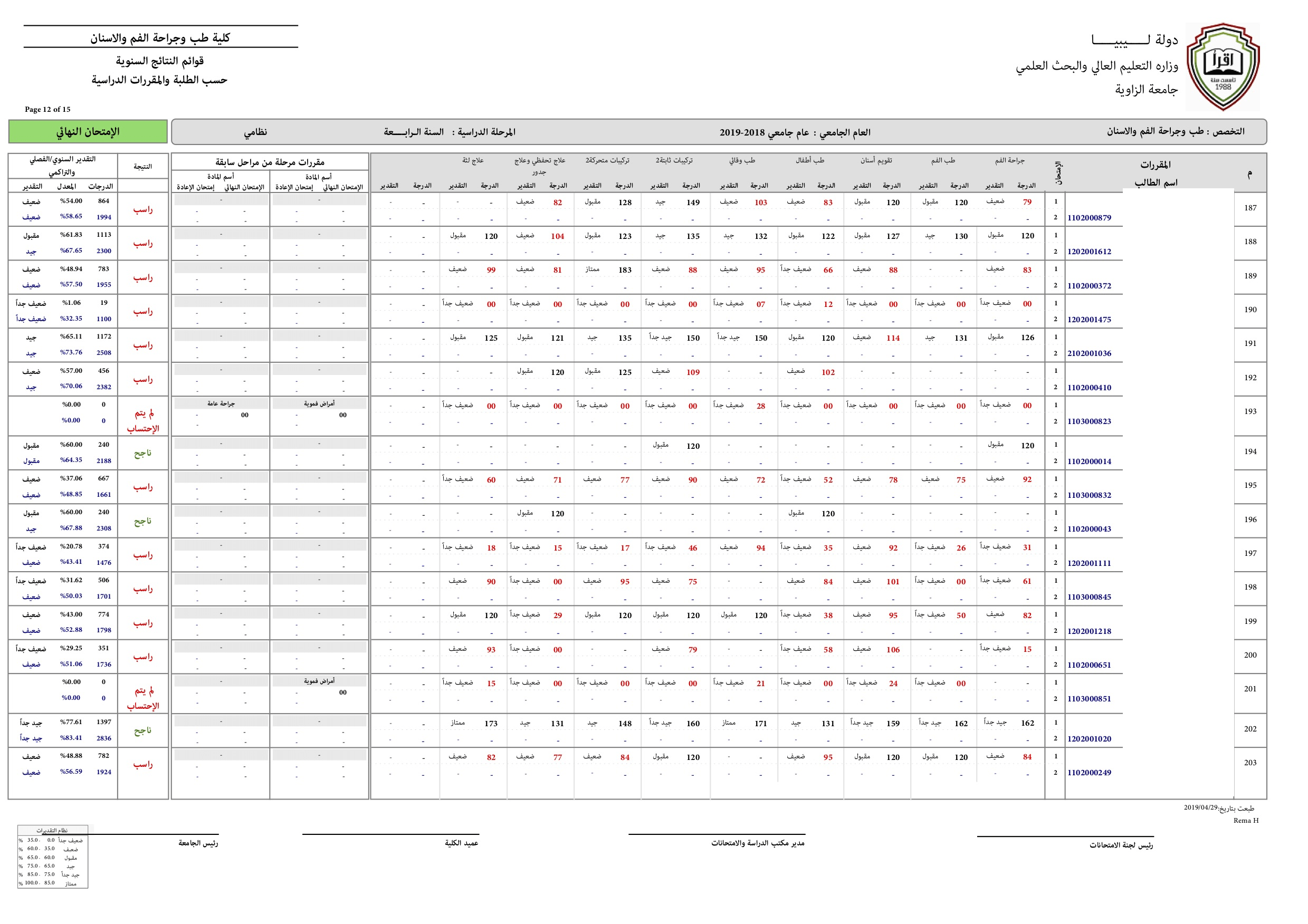 نتيجة السنة الرابعة للعام الجامعي 2018-2019