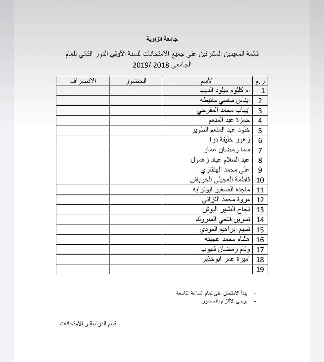 قائمة بأسماء المعيدين المراقبين على امتحان الدور الثاني السنة الأولى والثانية لجميع المواد
