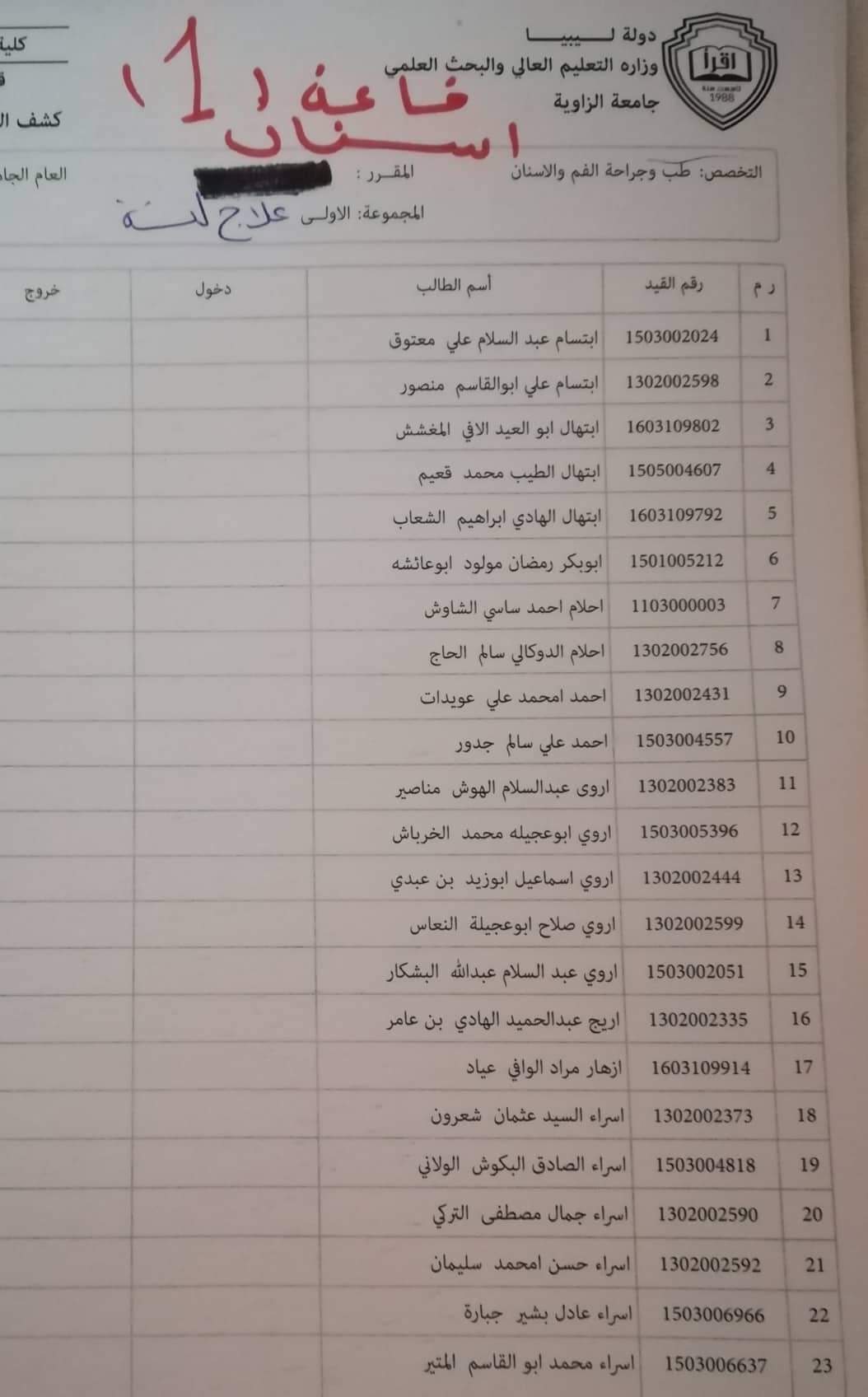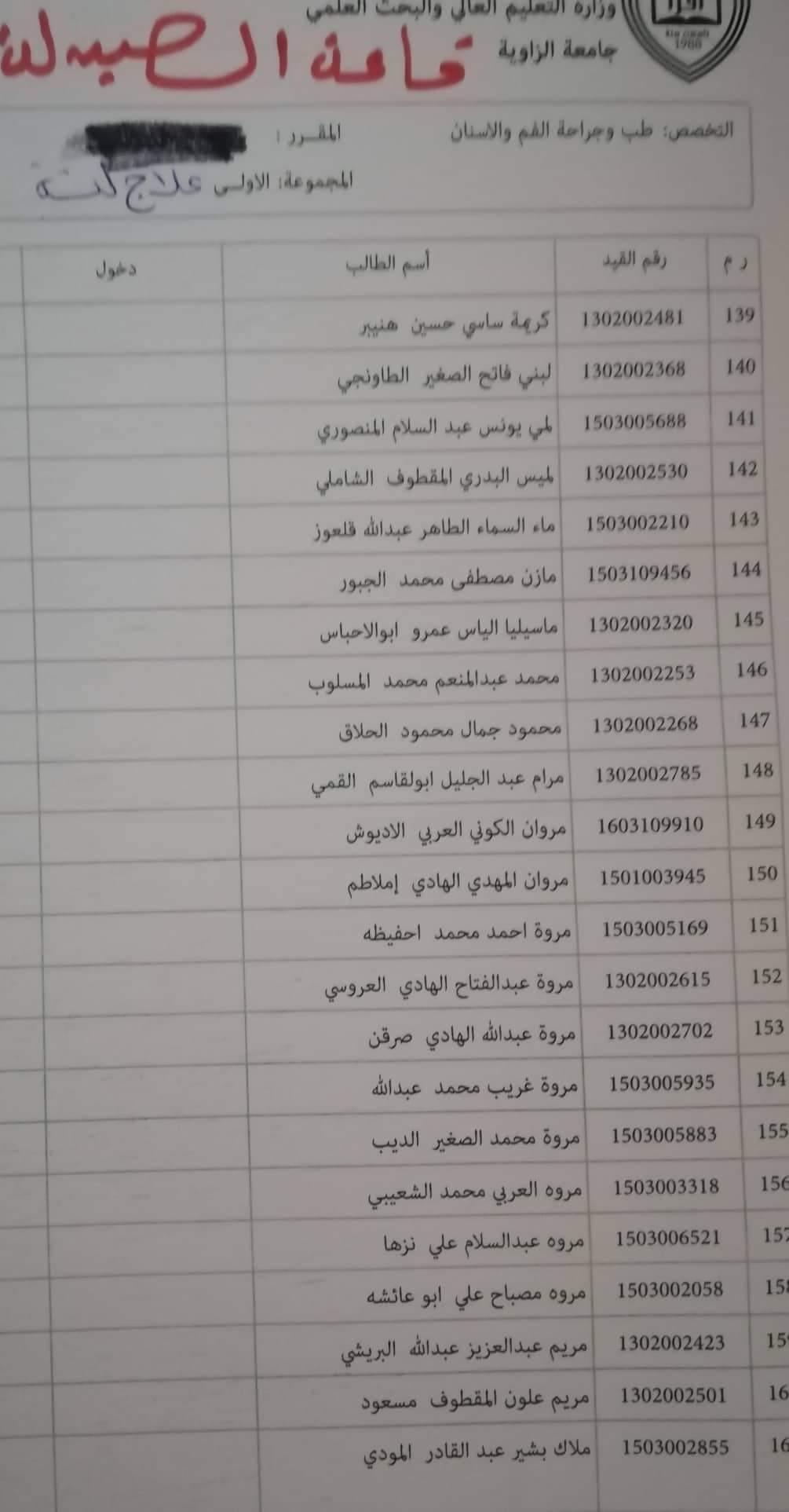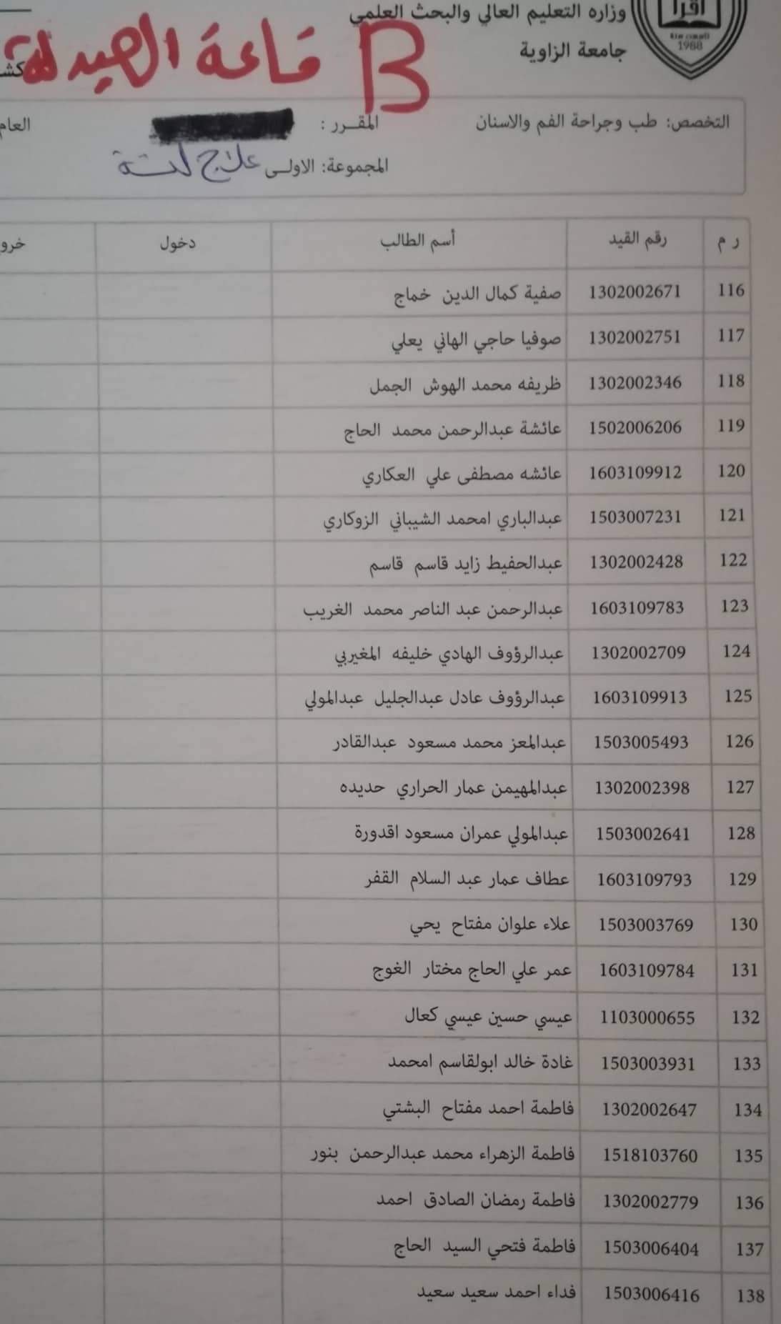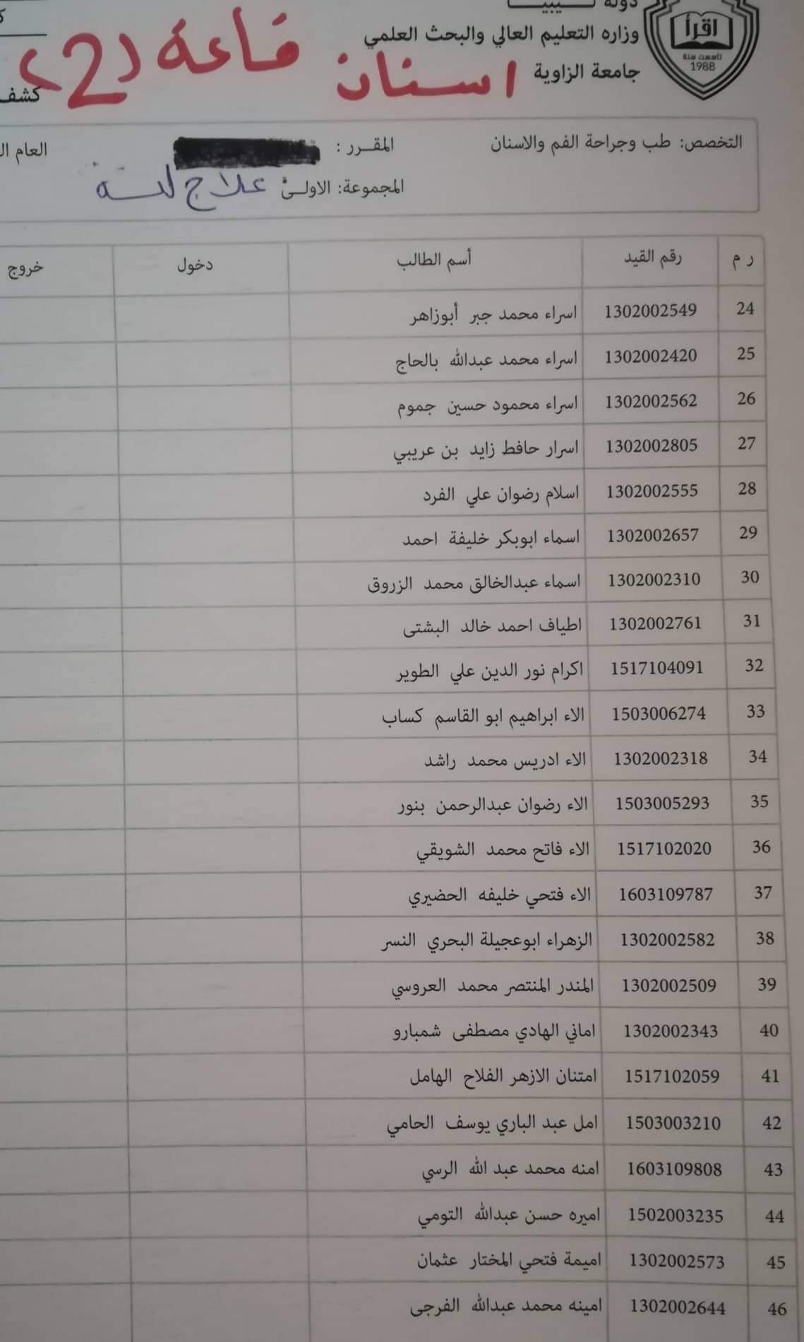 توزيع القاعات لطلبة السنه الرابعة الدفعة 14 للامتحان النظري لمادة علاج اللثه ليوم السبت الموافق 28 / 12 / 2019 على تمام الساعة 9