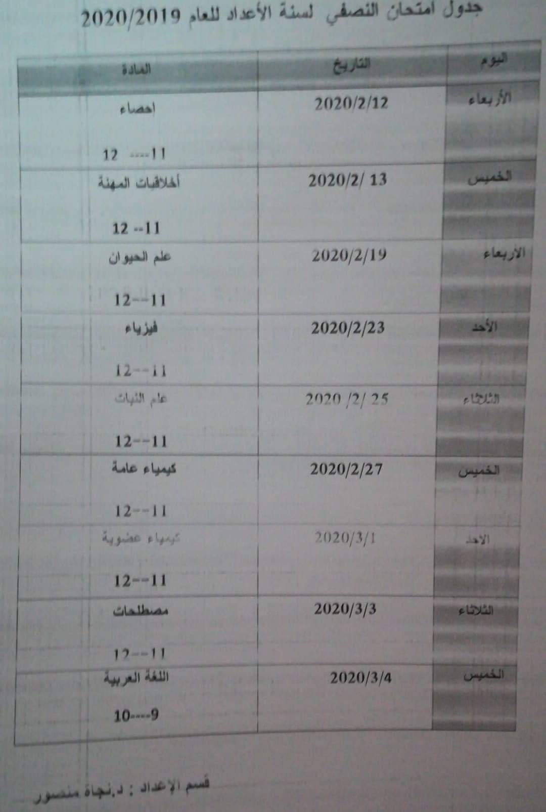 جدول الامتحانات النصفية للعام الدراسي 2019_2020 بعد التعديل