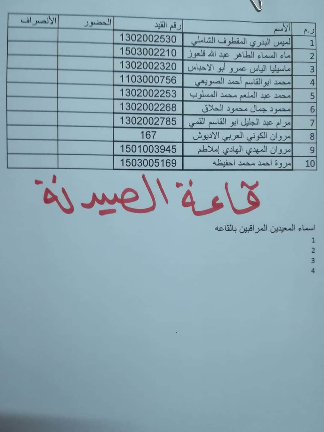 توزيع قوائم الطلبه للامتحان مادة طب الأطفال ليوم غذا الاثنين الموافق 20_7_2020 بقاعات الأسنان والصيدلة