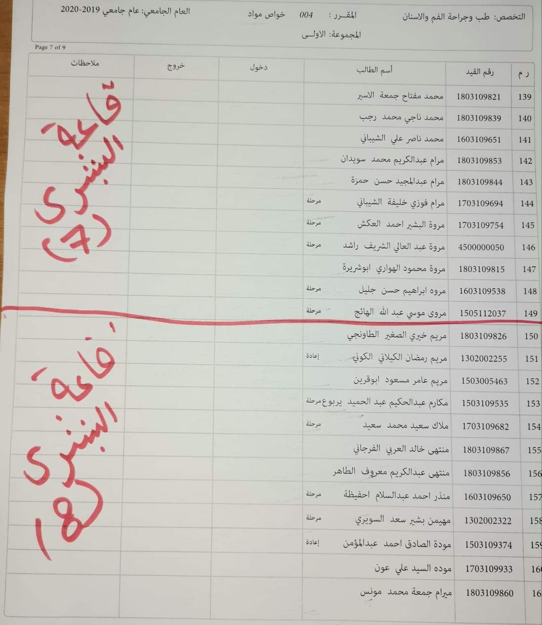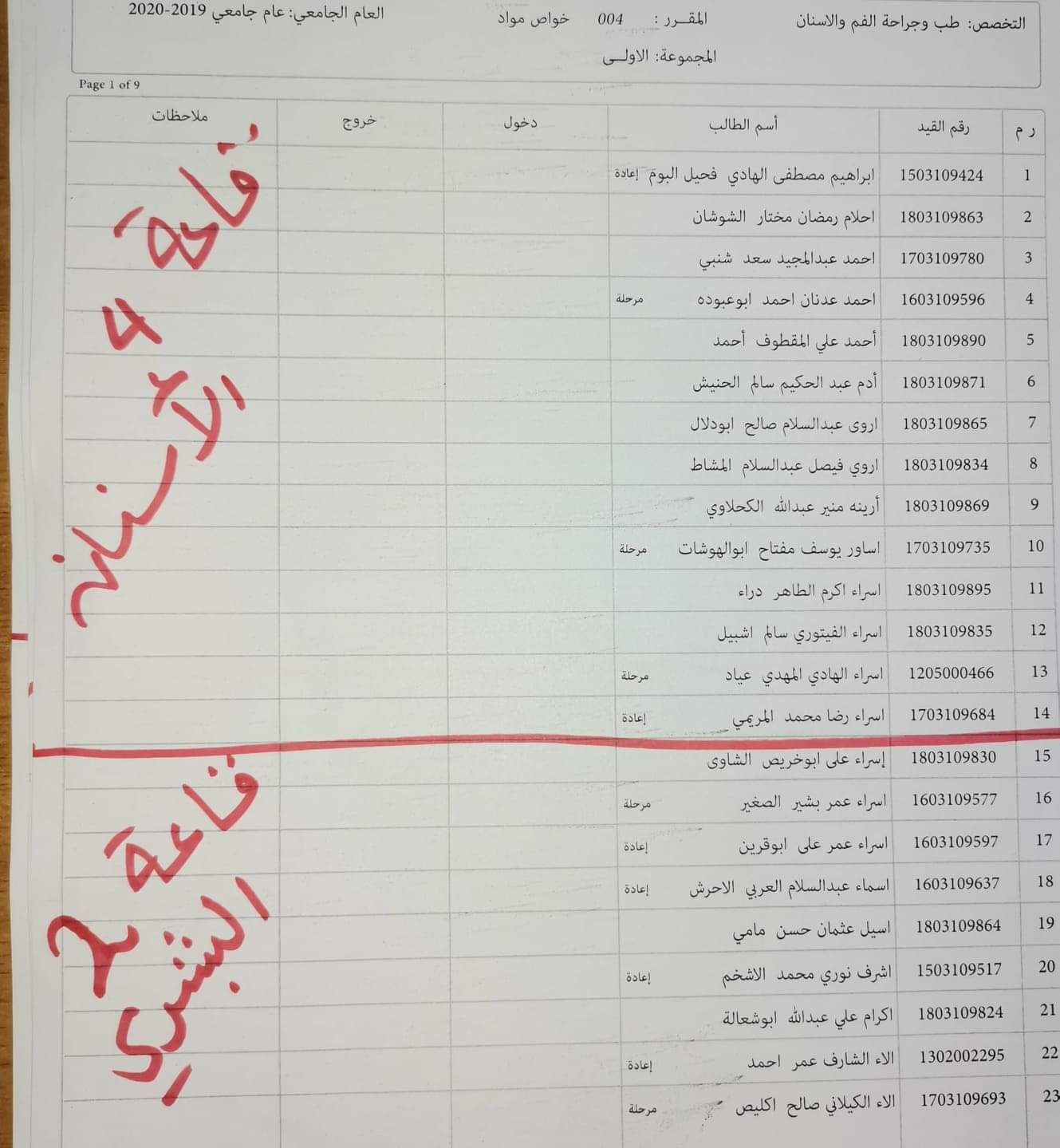 توزيع القاعات للامتحان الدور الأول السنة الأولى ليوم الأربعاء الموافق 30 / 9 / 2020   لمادة خواص-المواد على تمام الساعه 9:00،،بالتوفيق للجميع يرجى الإلتزام بالإجراءات الوقائية