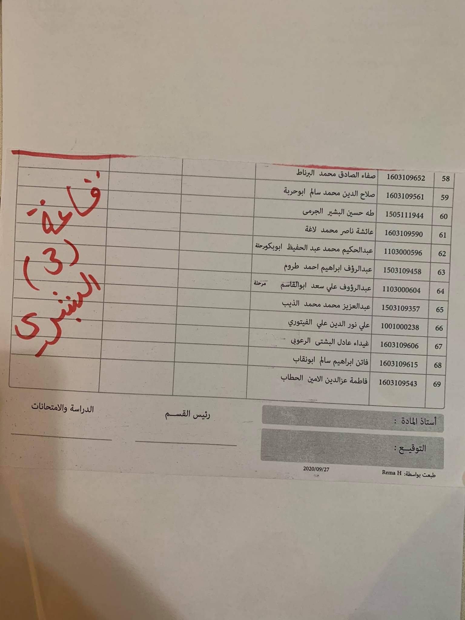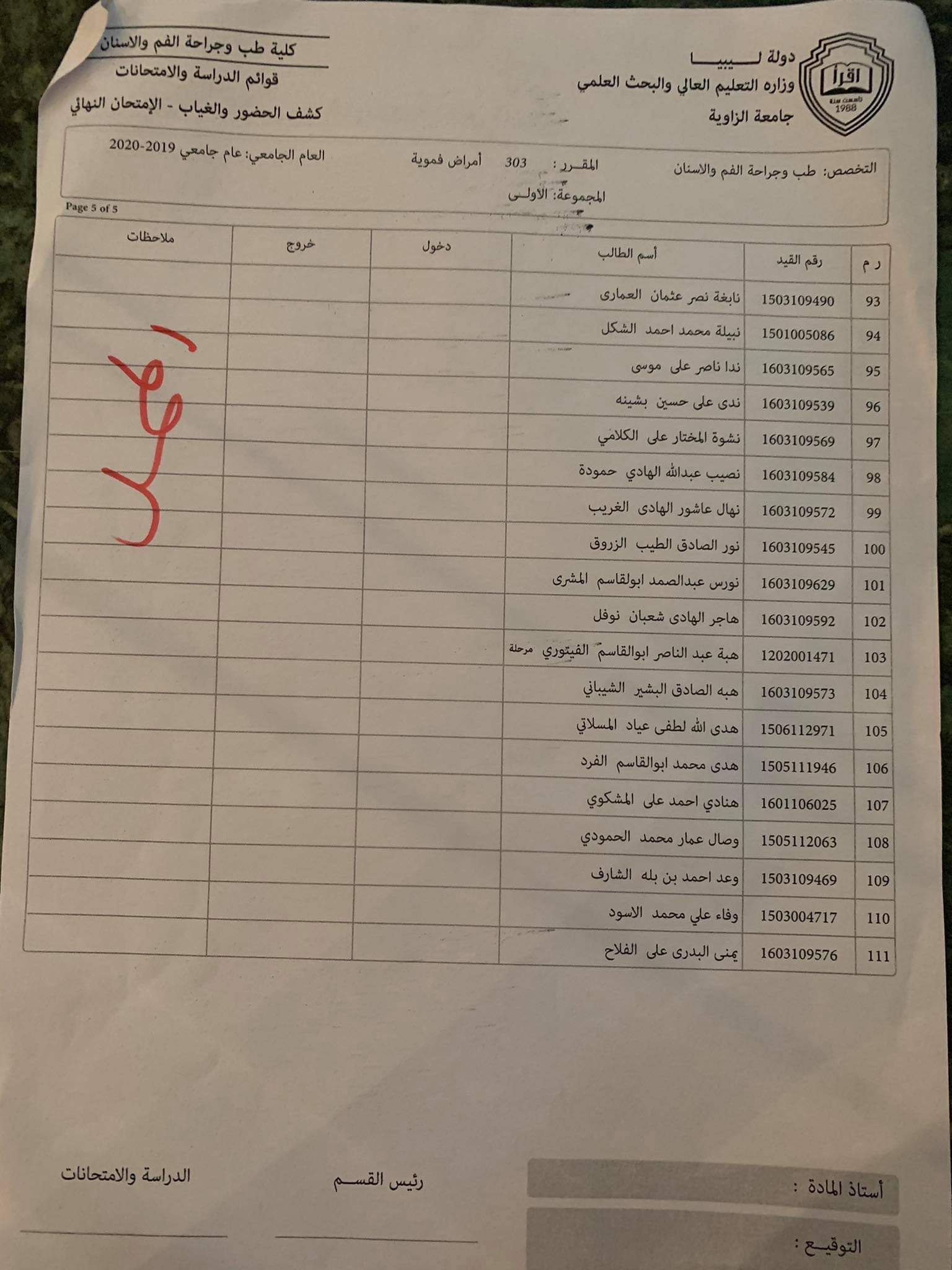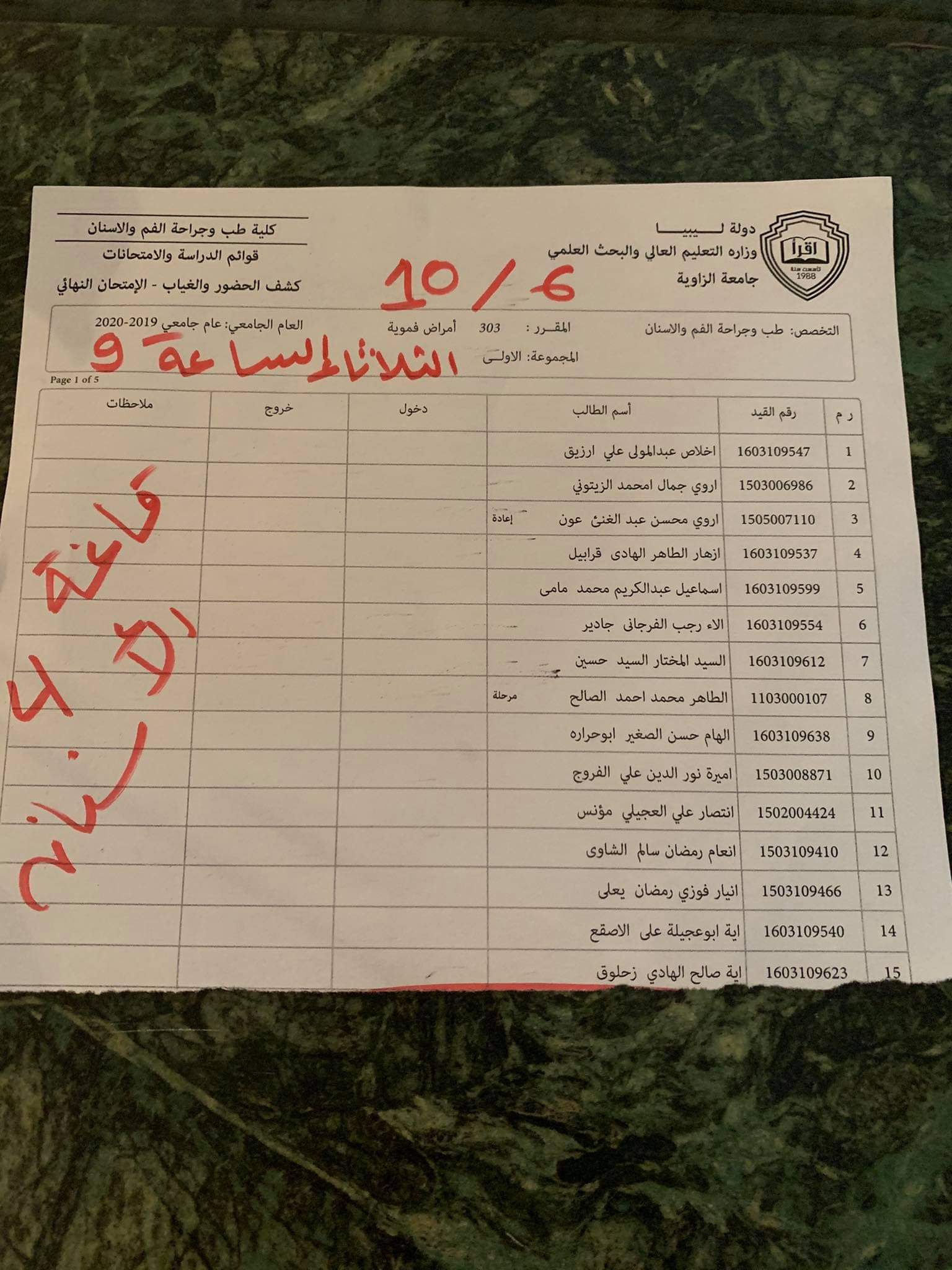 قوائم توزيع القاعات للامتحان الدور الأول السنة الثالثه لمادة الأمراض الفموية ليوم غذا الثلاثاء الموافق 6 / 10 / 2020 على تمام الساعه 9