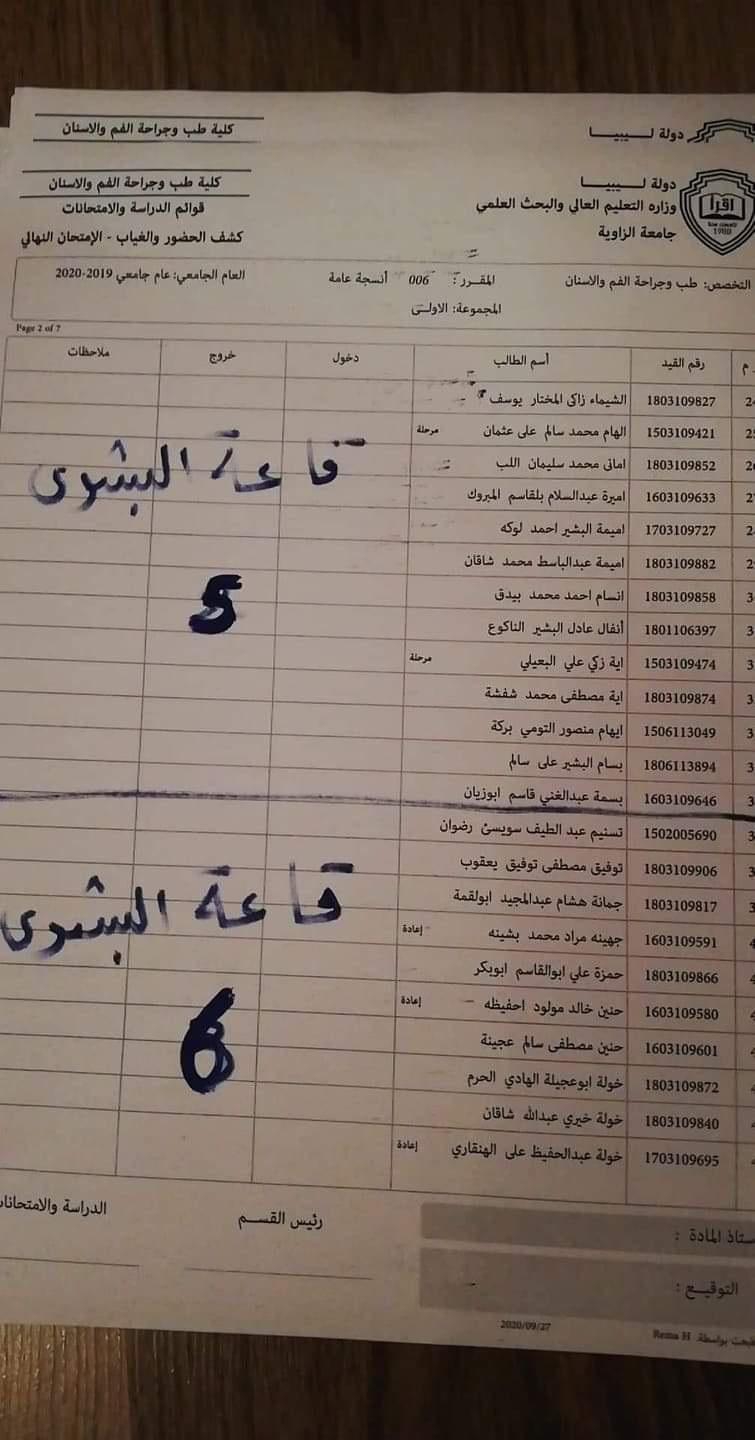 توزيع القاعات للامتحان الدور الأول السنة الأولى ليوم غذا الأربعاء الموافق 14 / 10 / 2020 لمادة الأنسجة العامه على تمام الساعه 9