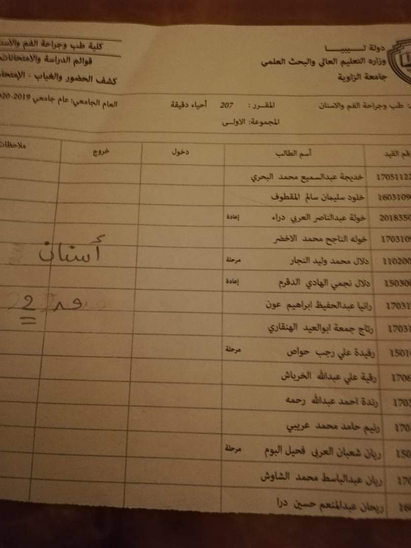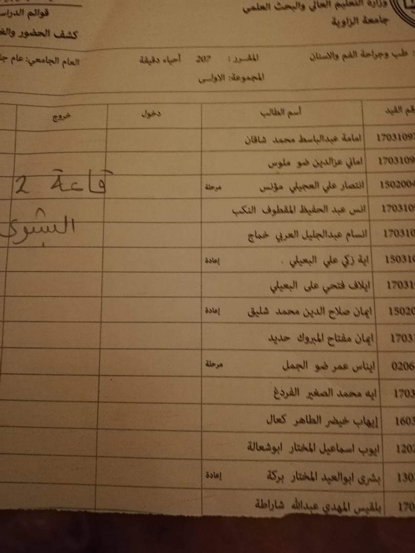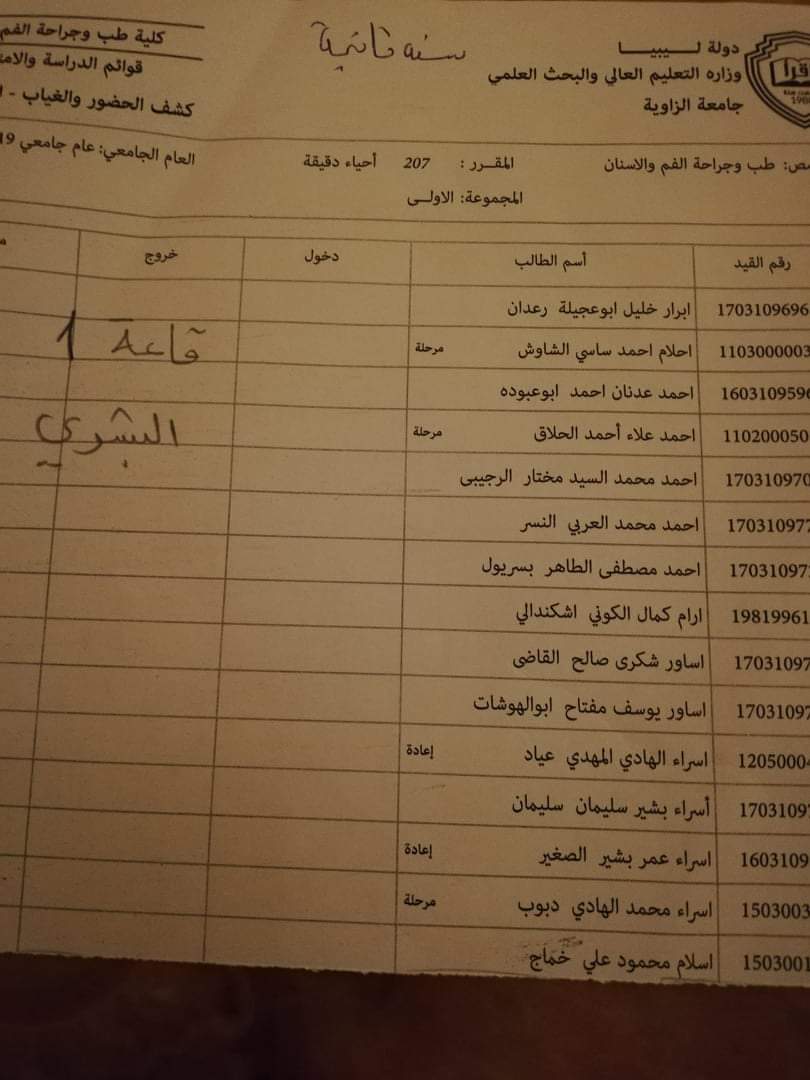 قوائم توزيع القاعات للامتحان الدور الأول السنة الثانية ليوم غذا الأربعاء الموافق 21 / 10 /2020 لمادة الأحياء الدقيقة على تمام الساعه 9