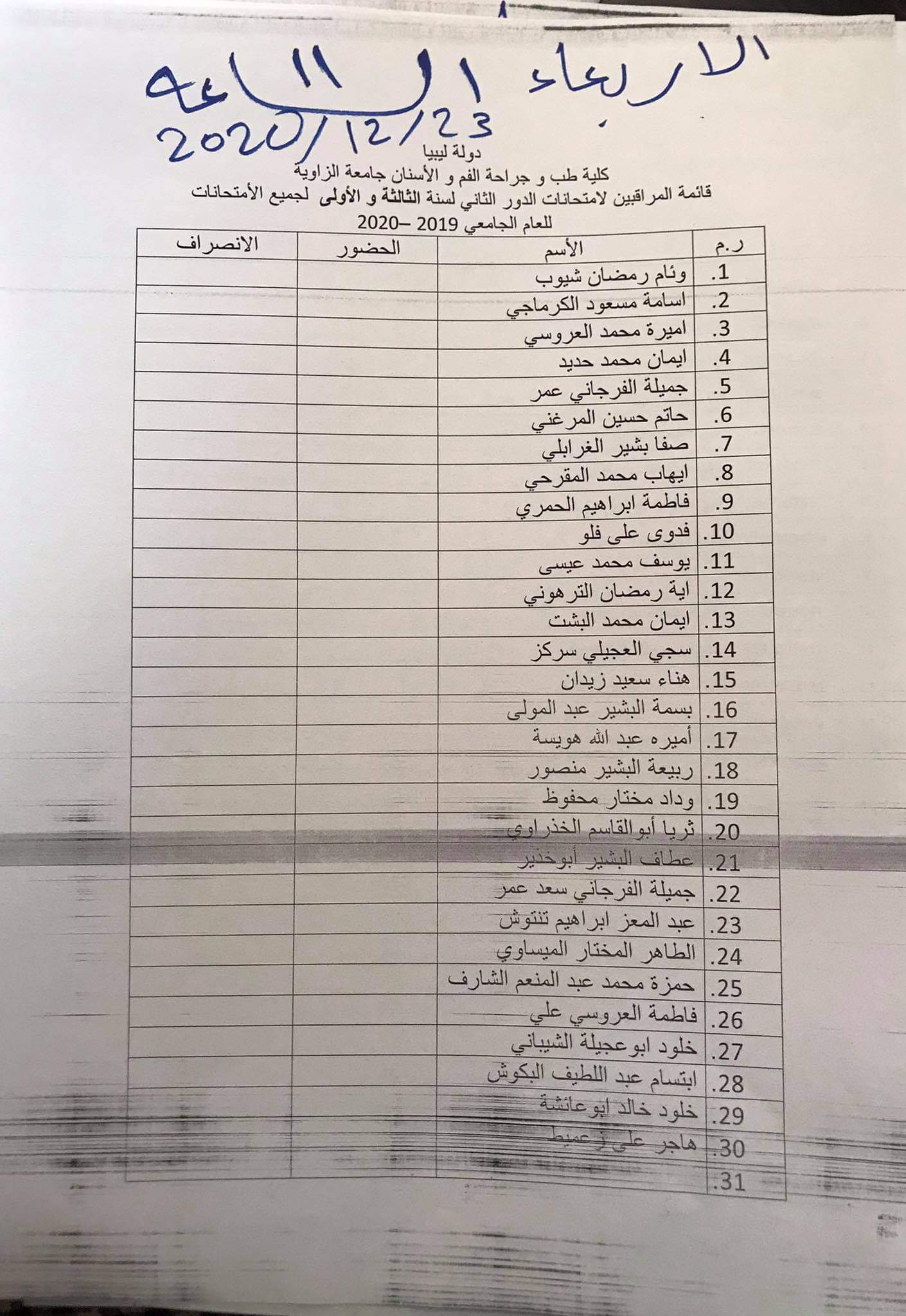 قائمة بأسماء المعيدين المراقبين وقايمة بتوزيع القاعات للامتحان الدور الثاني لطلبة السنة الثالثة لمادة باطنة العامة