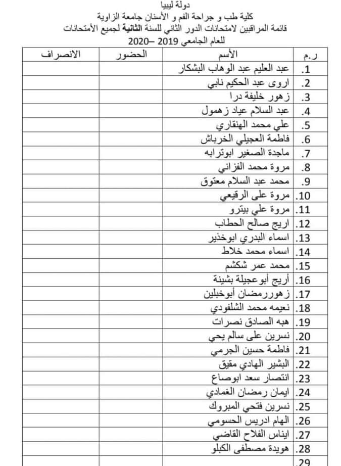 قائمة المعيدين المراقبين على امتحان الدور الثاني للسنه الثانيه مادة التركيبات المتحركة على تمام الساعه 9 ليوم غذا الأحد الموافق 27 / 12 / 2020