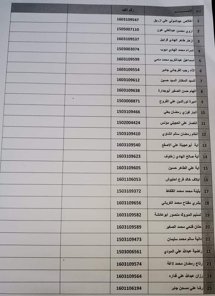 قائمة أسماء طلبة السنه الرابعه الدفعه 16 المجموعة (الأولى)