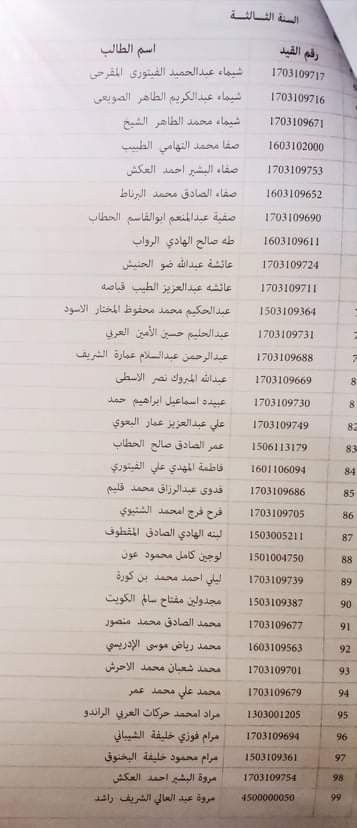 قوائم طلبه السنه الثالثه المجموعه الثانيه