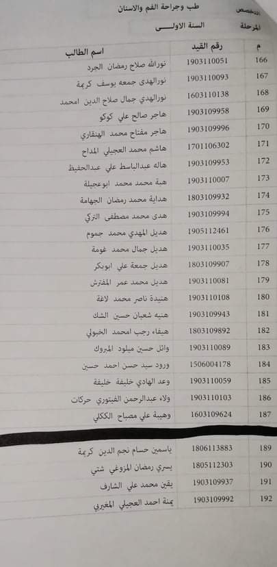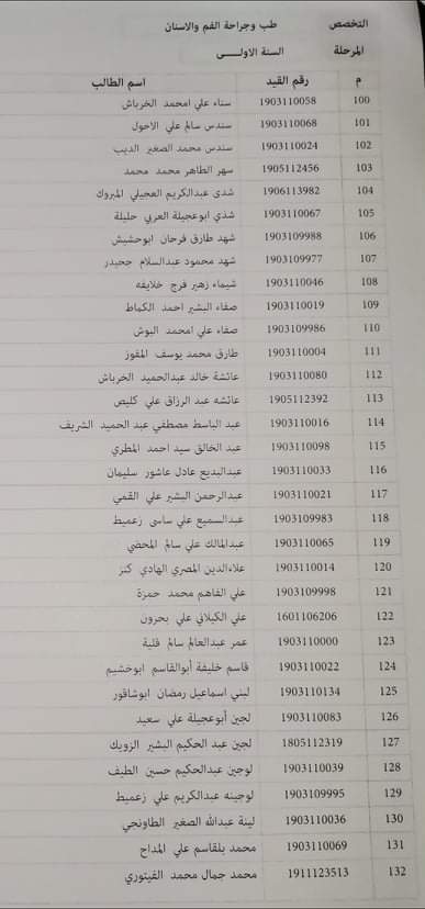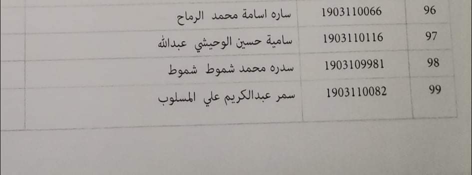 قوائم طلبة السنة الأولي المجموعة الثانية
