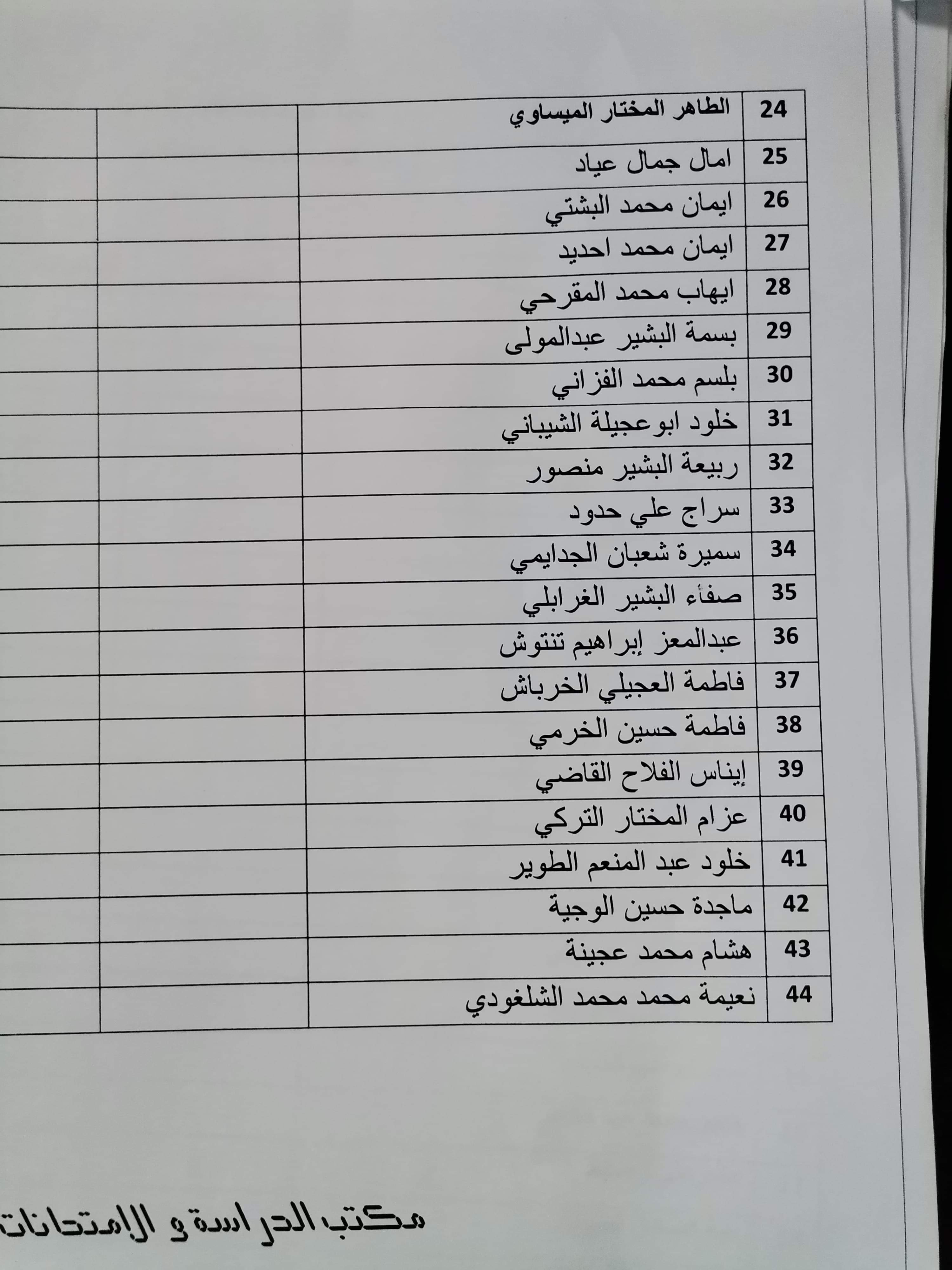 قايمة المعيدين المراقبين على امتحان الدور الأول لسنة الرابعة الدفعة 15 والتكميلي