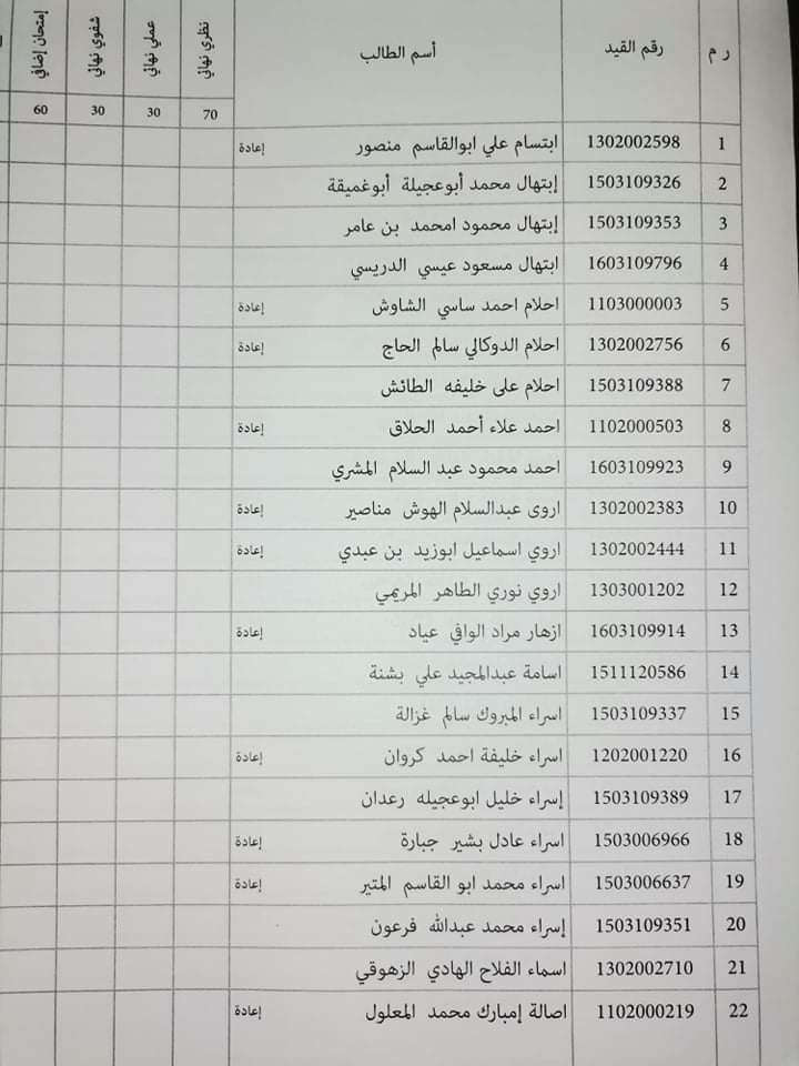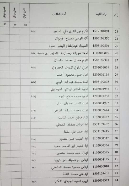قوائم الطلبة للامتحان العملي ليوم غذا الاثنين