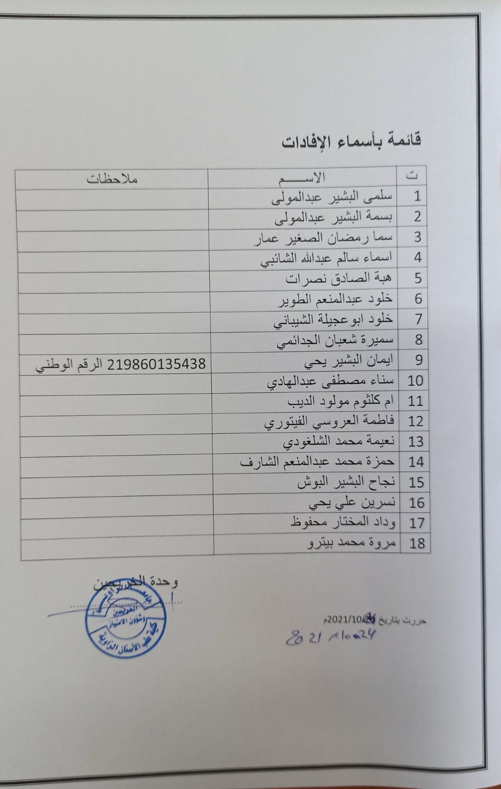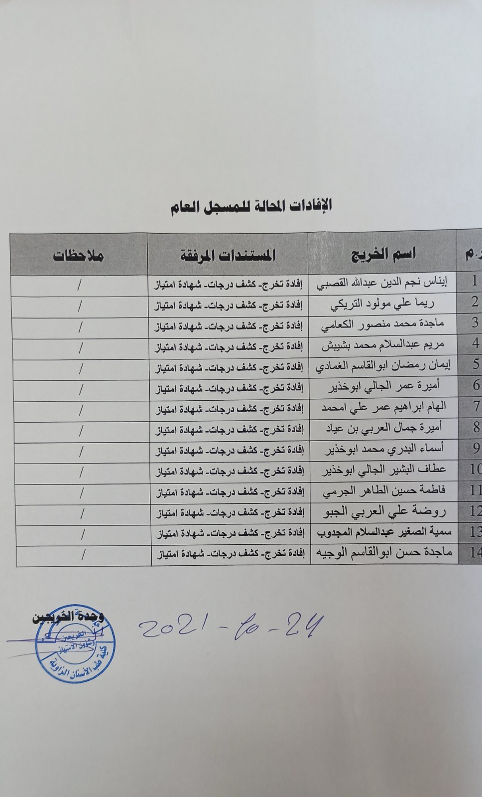 إعلان.. علي الطلبة الخريجين المذكوره أسمائهم في القوائم مراجعة مكتب المسجل العام بالجامعة..