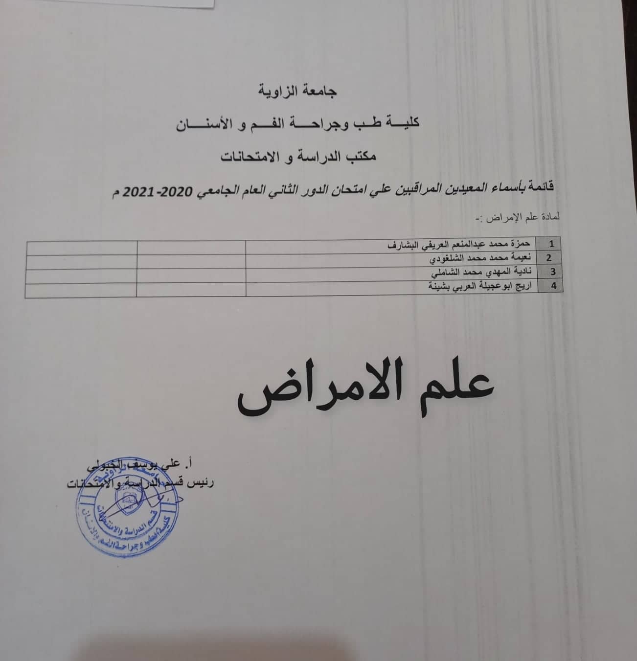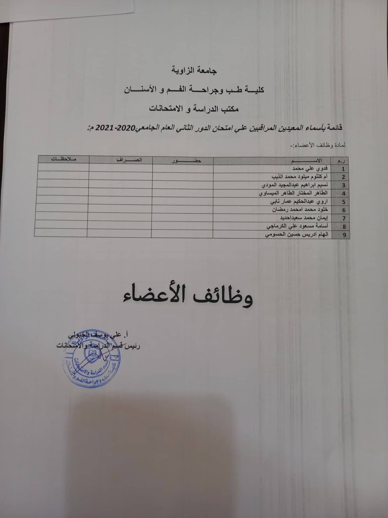 قوائم المعيدين المراقبين لامتحانات الدور الثاني لجميع السنوات يرجي الالتزام بالحضور بالموعد