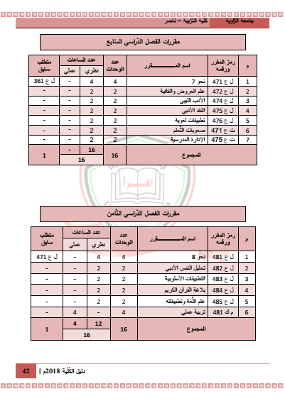 الخطة الدراسية
