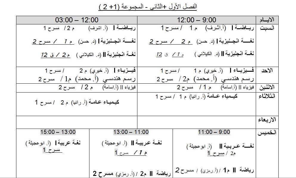 جدول الدراسة للفصل خريف 2021-2022م لجميع الاقسام العلمية.