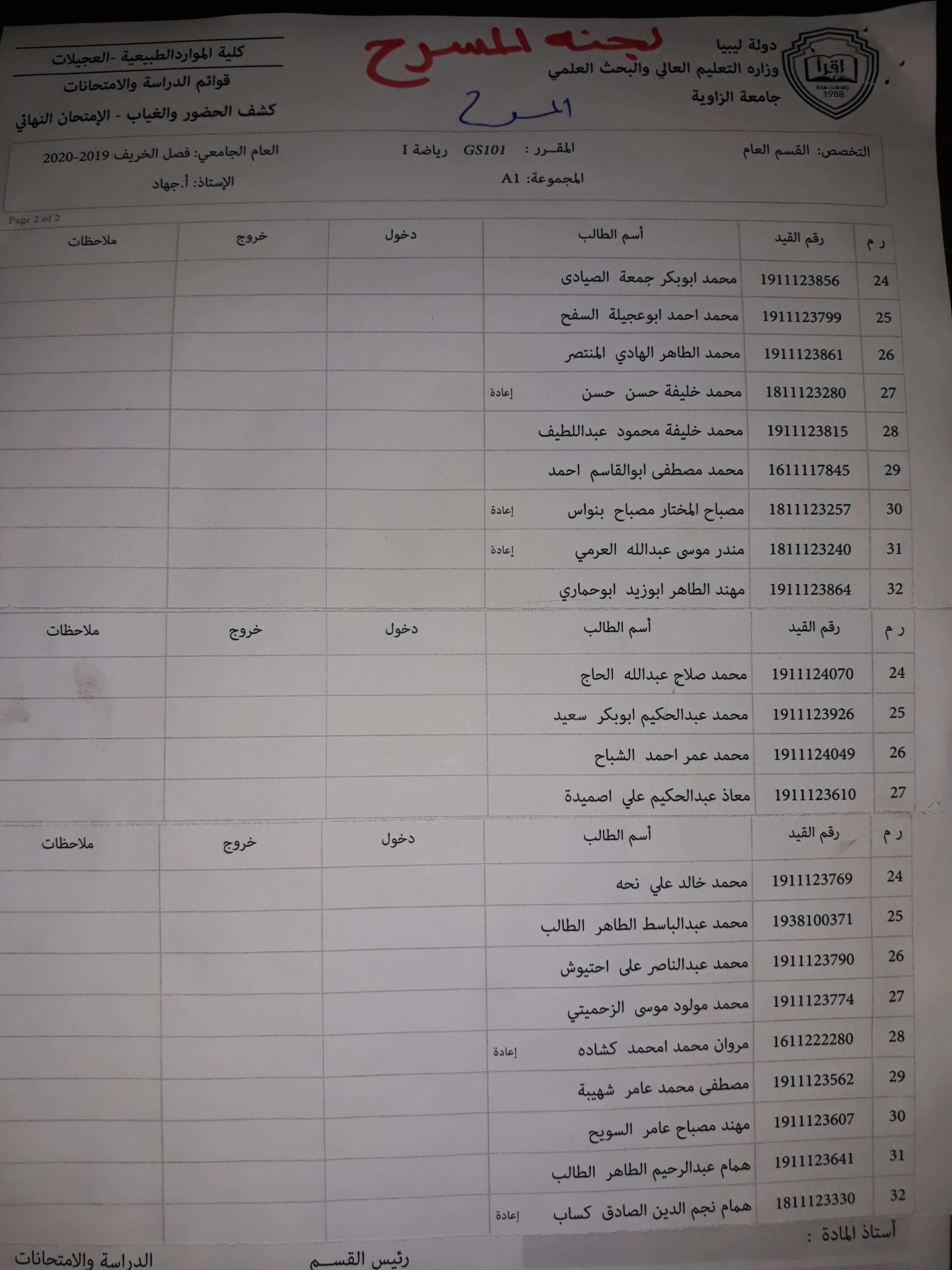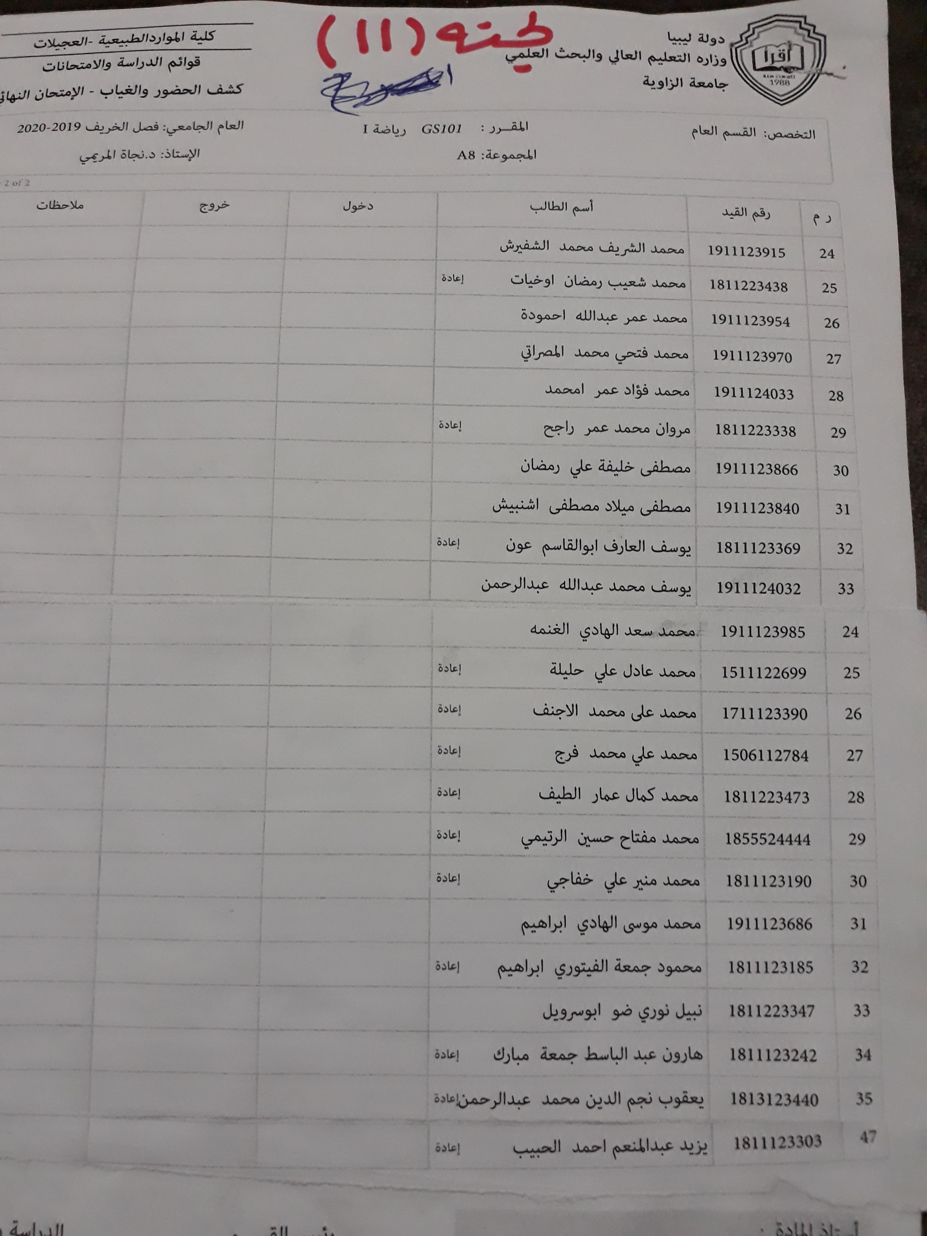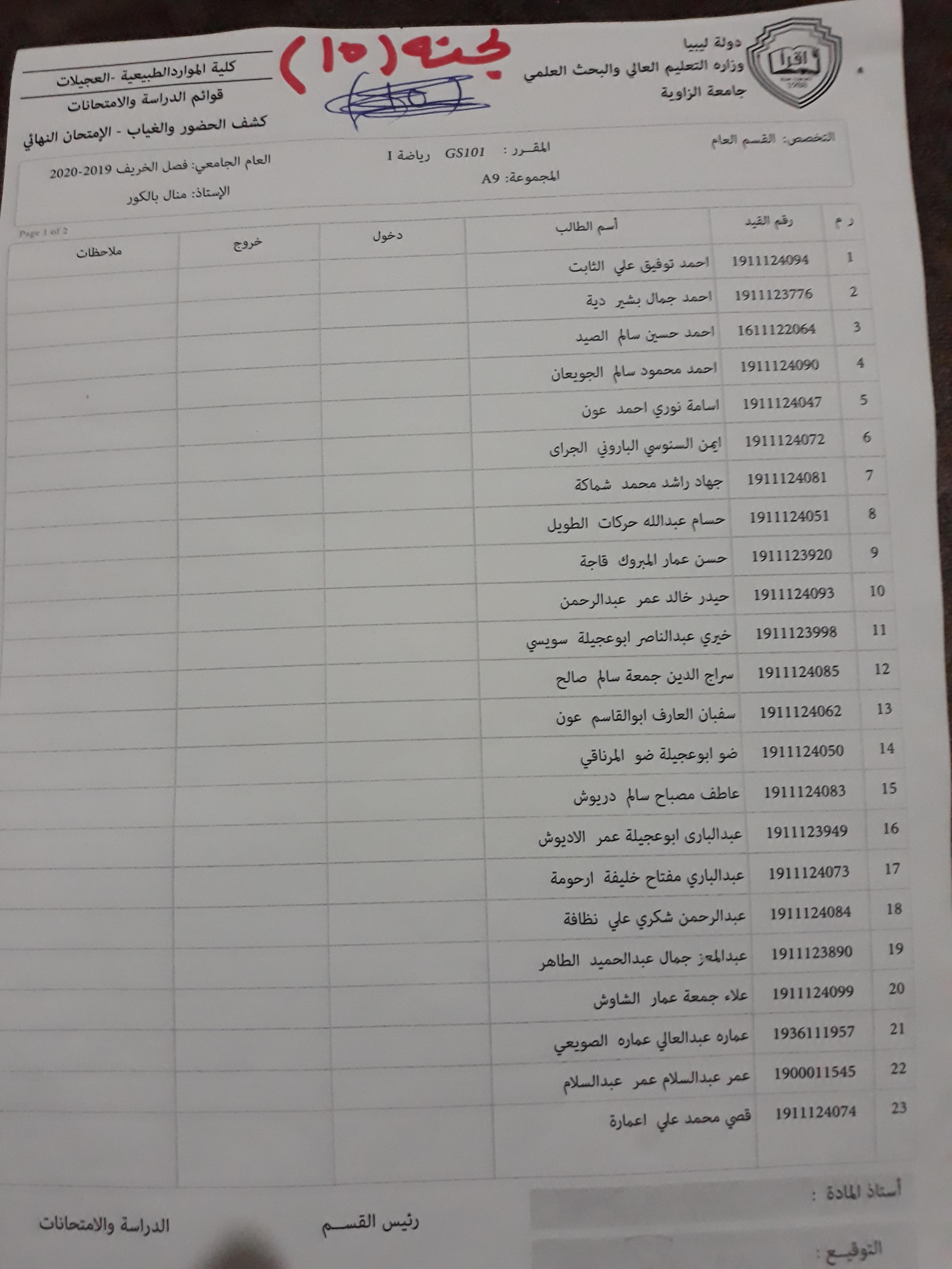 علي جميع الطلبة التقيد باللجان ولن يدخل اي طالب في لجنة غير موجود اسمه فيها