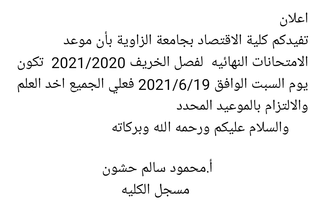 تتبنى كلية الاقتصاد بالزاوية قيماً من شأنها تحسين الأداء والدفع بالعملية التعليمية باتجاه تحقيق الأهداف ويمكن تحديدها كما هو موضح في الجدول التالي: