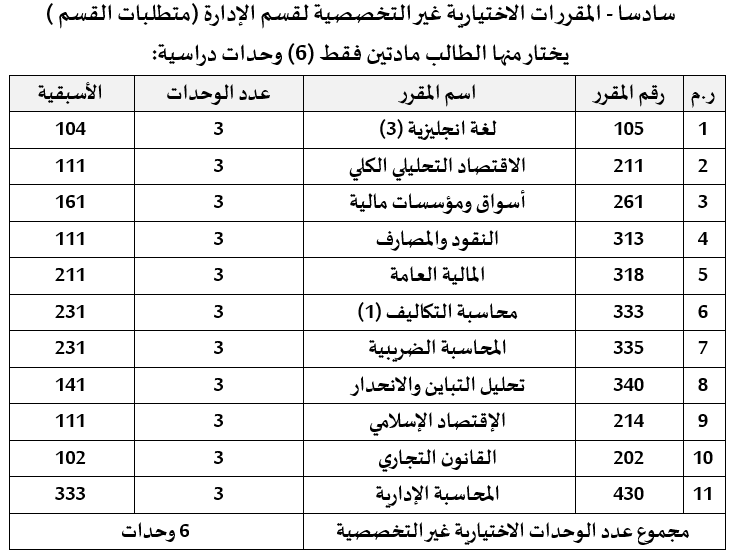 عدد خريجي قسم الإدارة