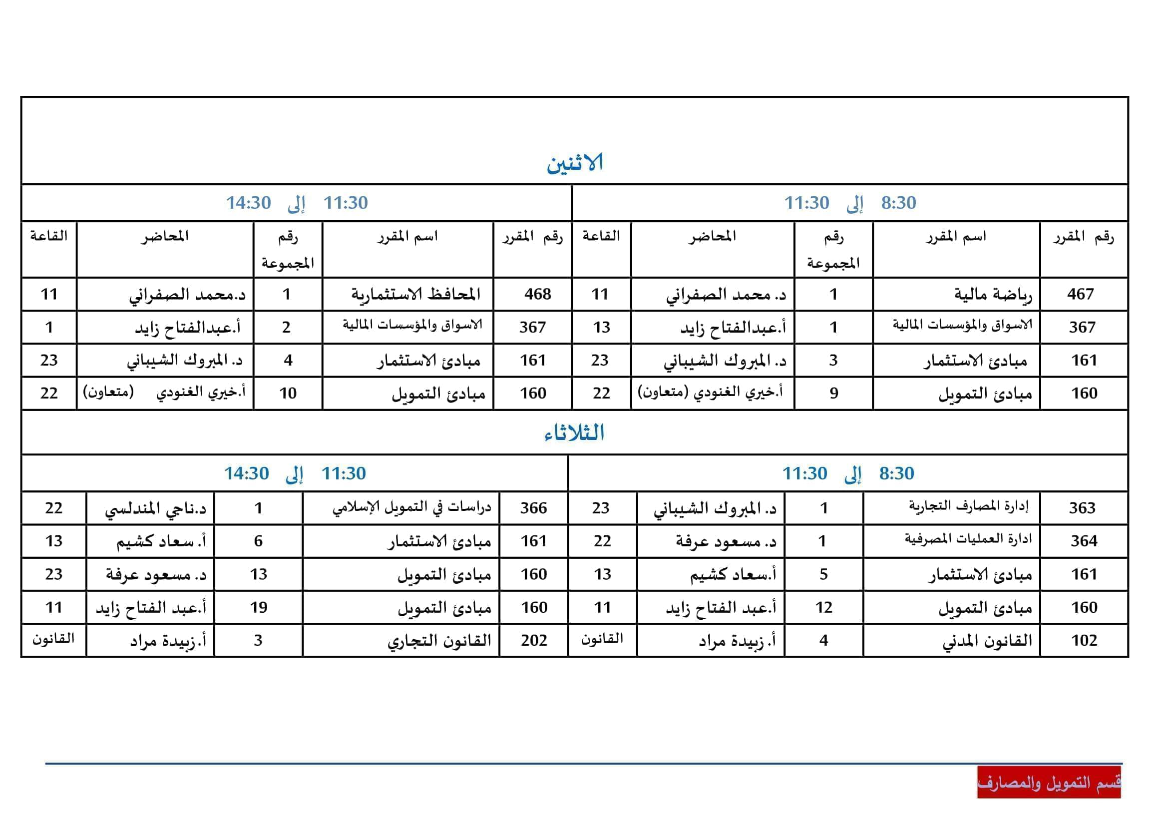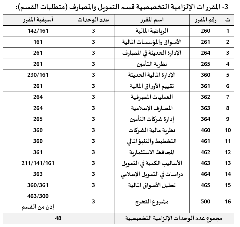 - المقررات الإلزامية التخصصية قسم التمويل والمصارف (متطلبات القسم) - المقررات الإلزامية التخصصية قسم التمويل والمصارف (متطلبات القسم)